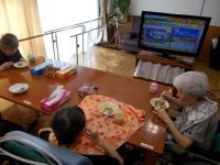 本日はお誕生日会も行いました。3人の方が今月のお誕生日を迎えました。御三方とも実年齢よりとても若々しく見えます(゜o゜)!元気の秘訣は「クヨクヨ悩まないこと」だそうです。本当におめでとうございました。来年もいっしょにお祝いできたらうれしいです。
