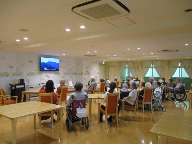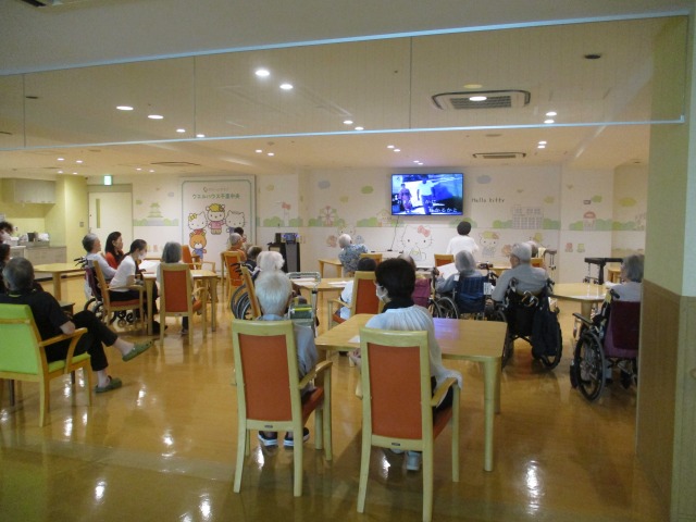 音楽に合わせ歌う入居者様や、真剣に見入る入居者様💛💛