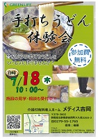 メディス吉岡で行う「手打ちうどん体験会」にもぜひ皆さんでお越しください♪
