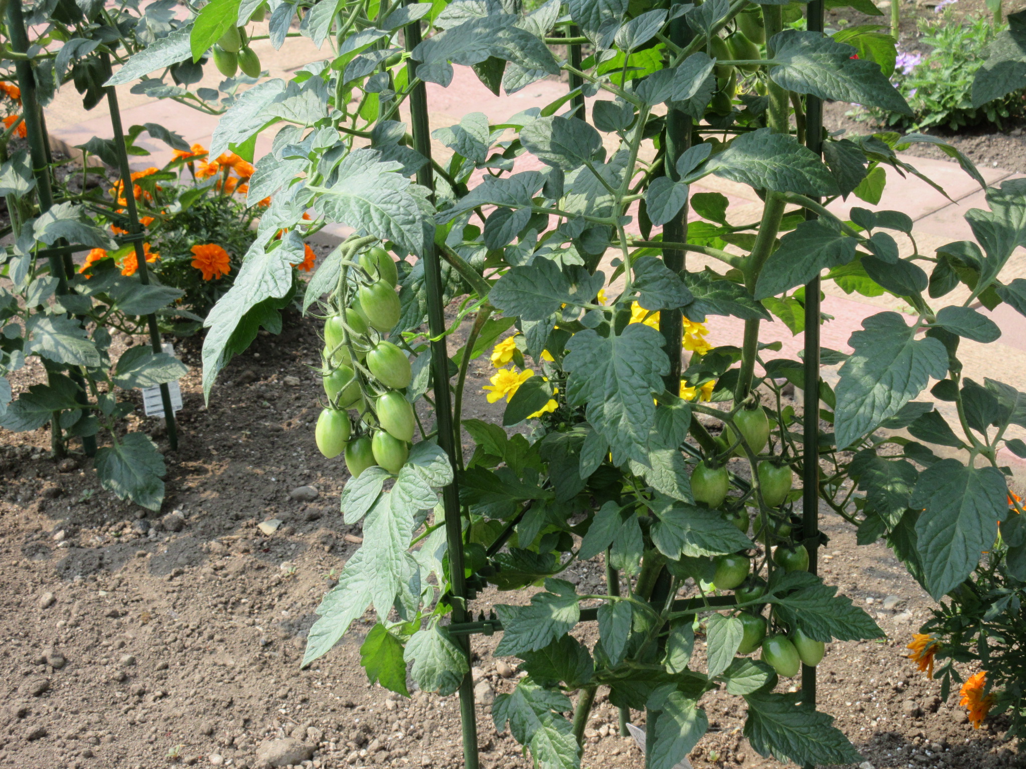 小松菜のような立派な葉モノ(名前は種を買ってきた職員しかわかりません笑)や、プチトマトも形になってきました