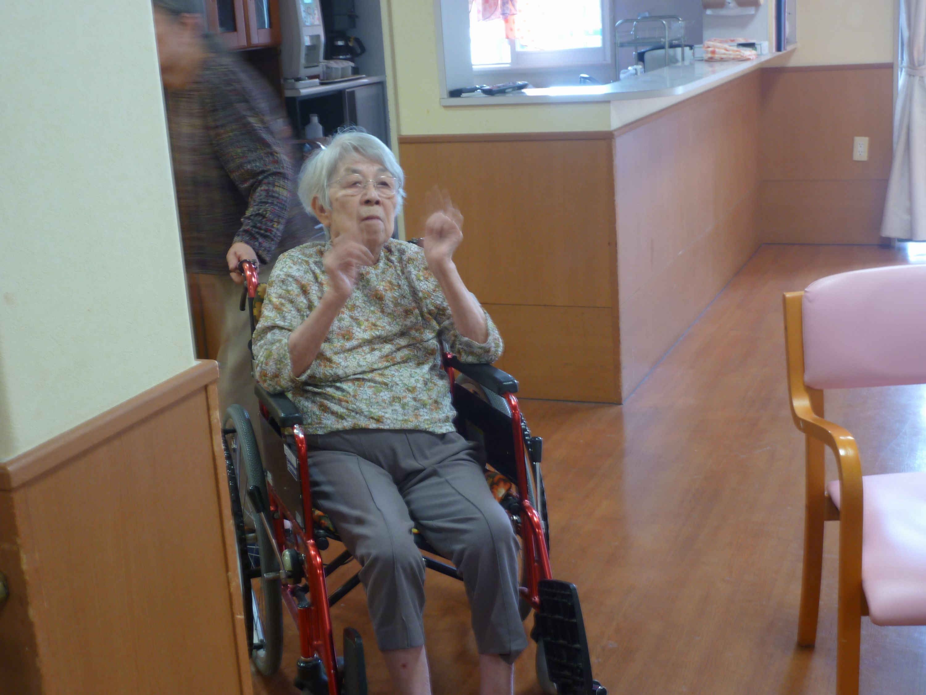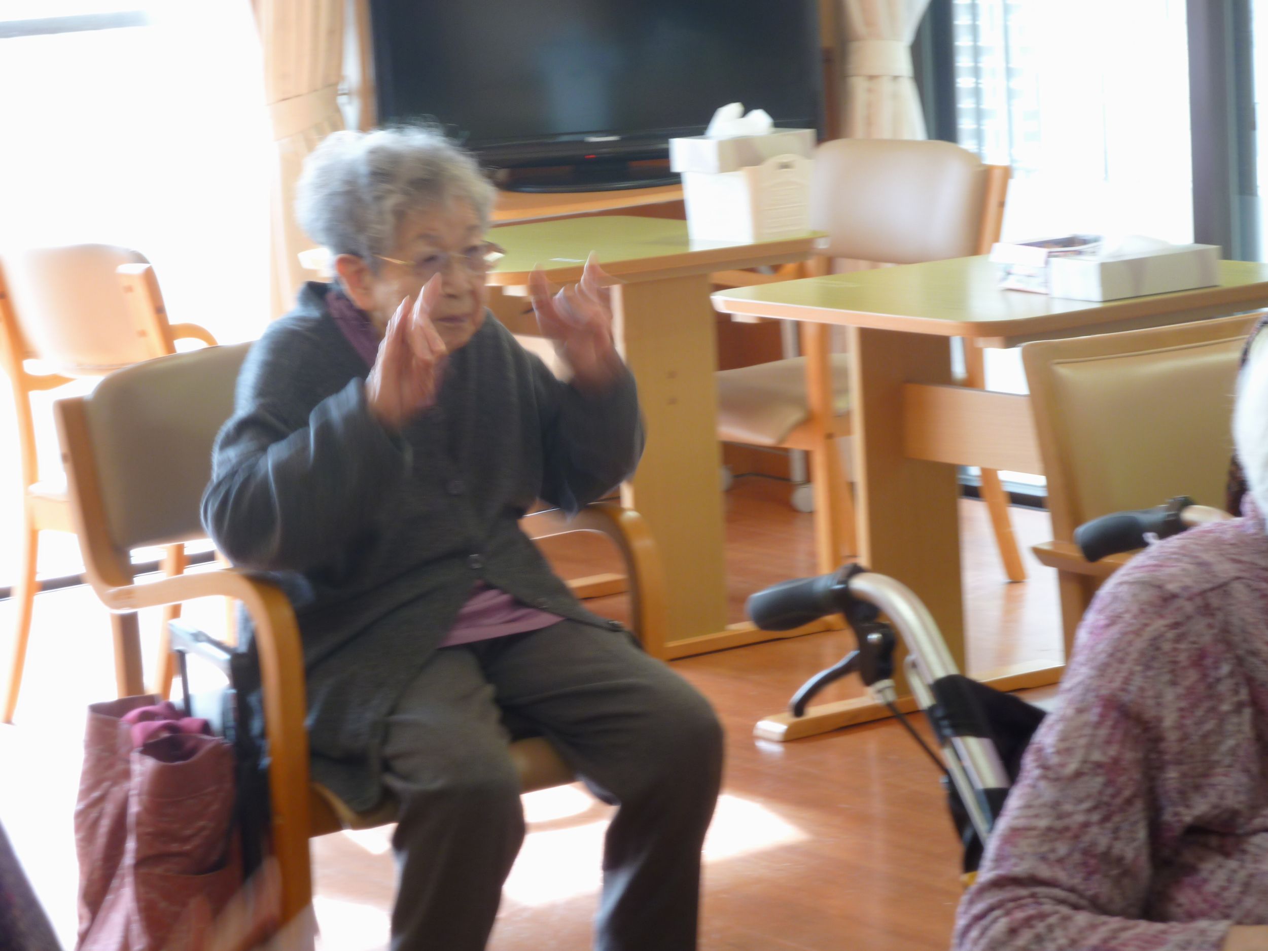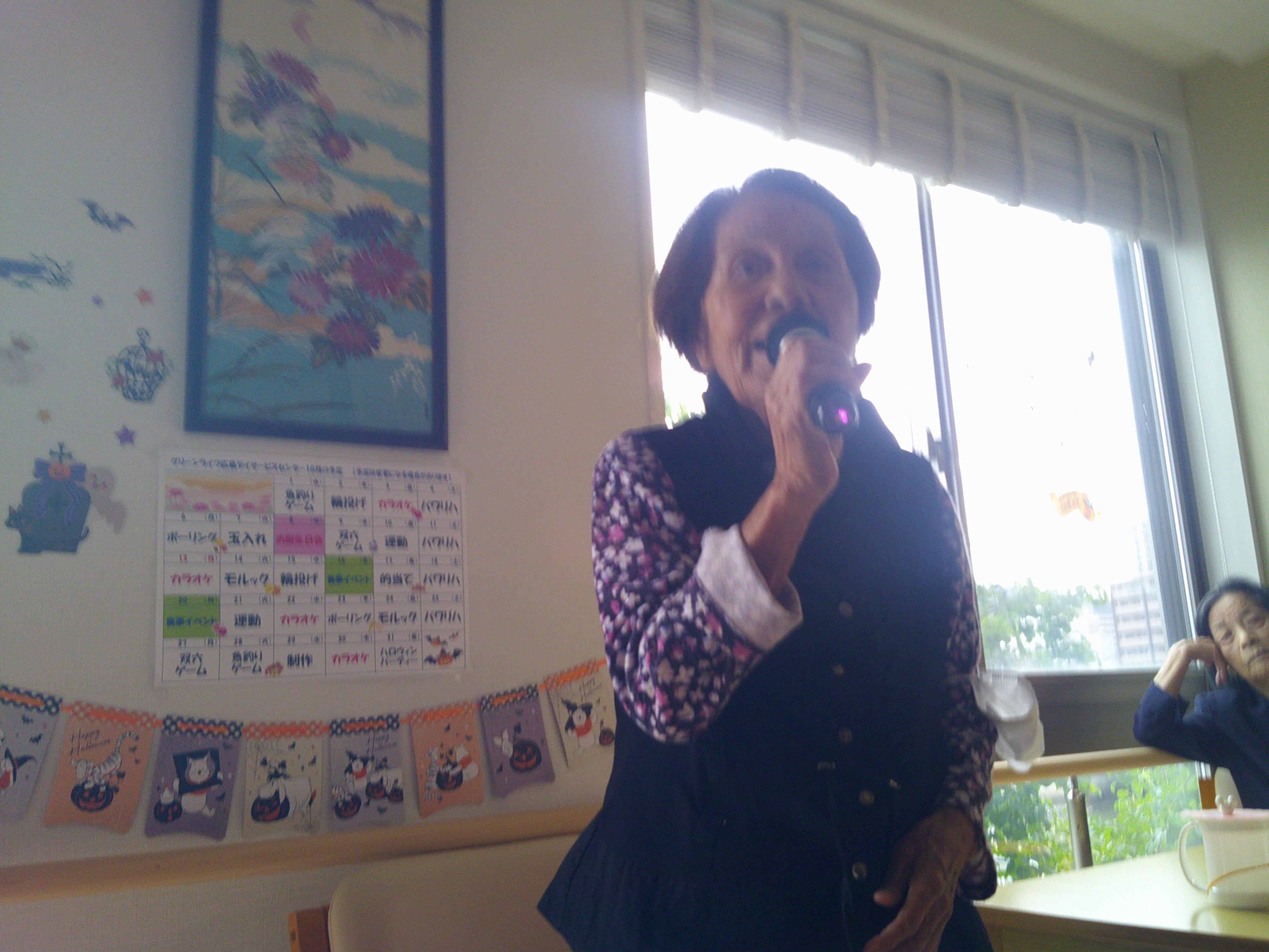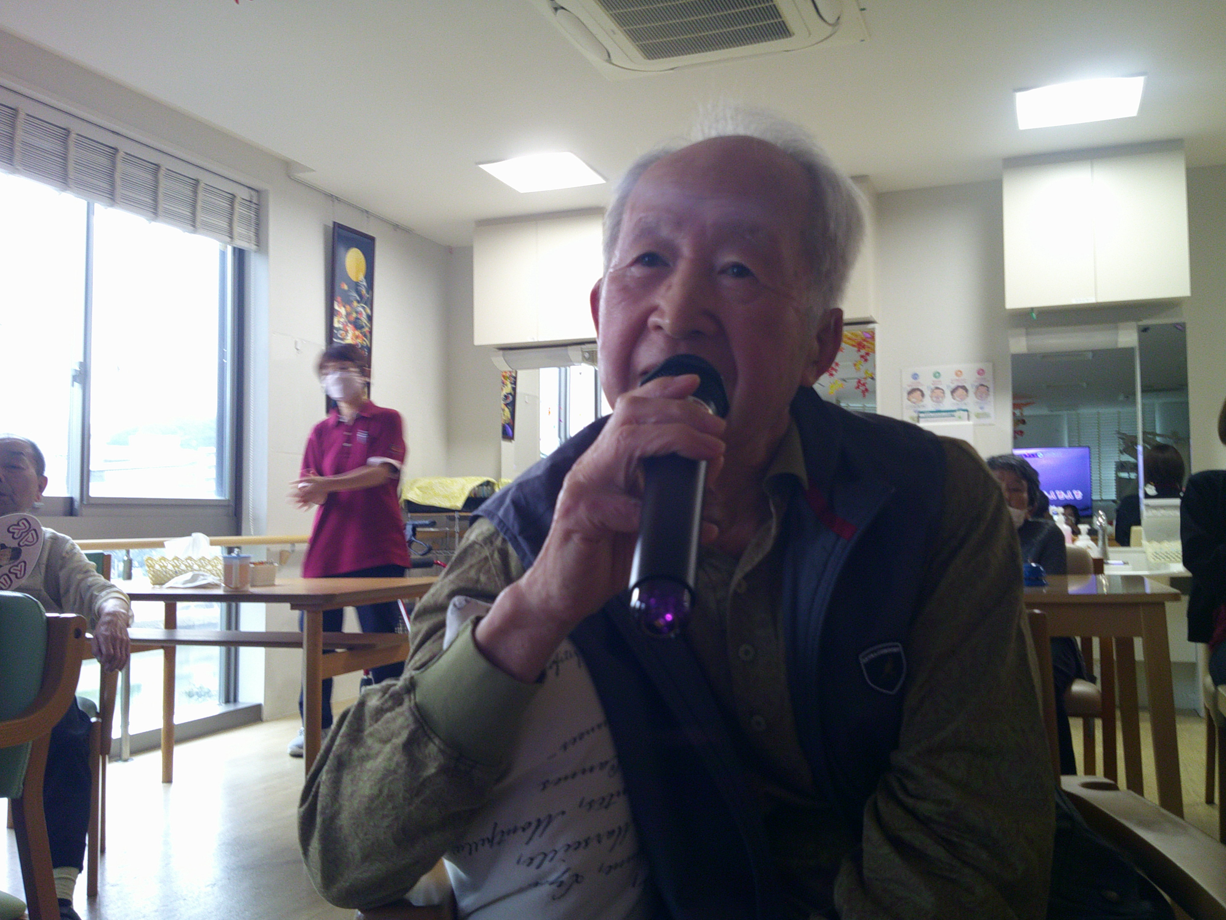 こんにちは、シーハーツ柏です。 文化の秋と言えば、歌です。 今週も音楽療法の時間がやってまいりました。「月がわびしい 路地裏の~」 「チャンチキおけさ」入居者様にとって馴染みがある曲ですね。 急に寒くなってきましたので、声を出して歌うことで、身体もポカポカ。先生とのコミュニケーションも積極的に取られる姿も見られました。音楽療法の時間は、入居者様にとって毎月の楽しみとなっています。