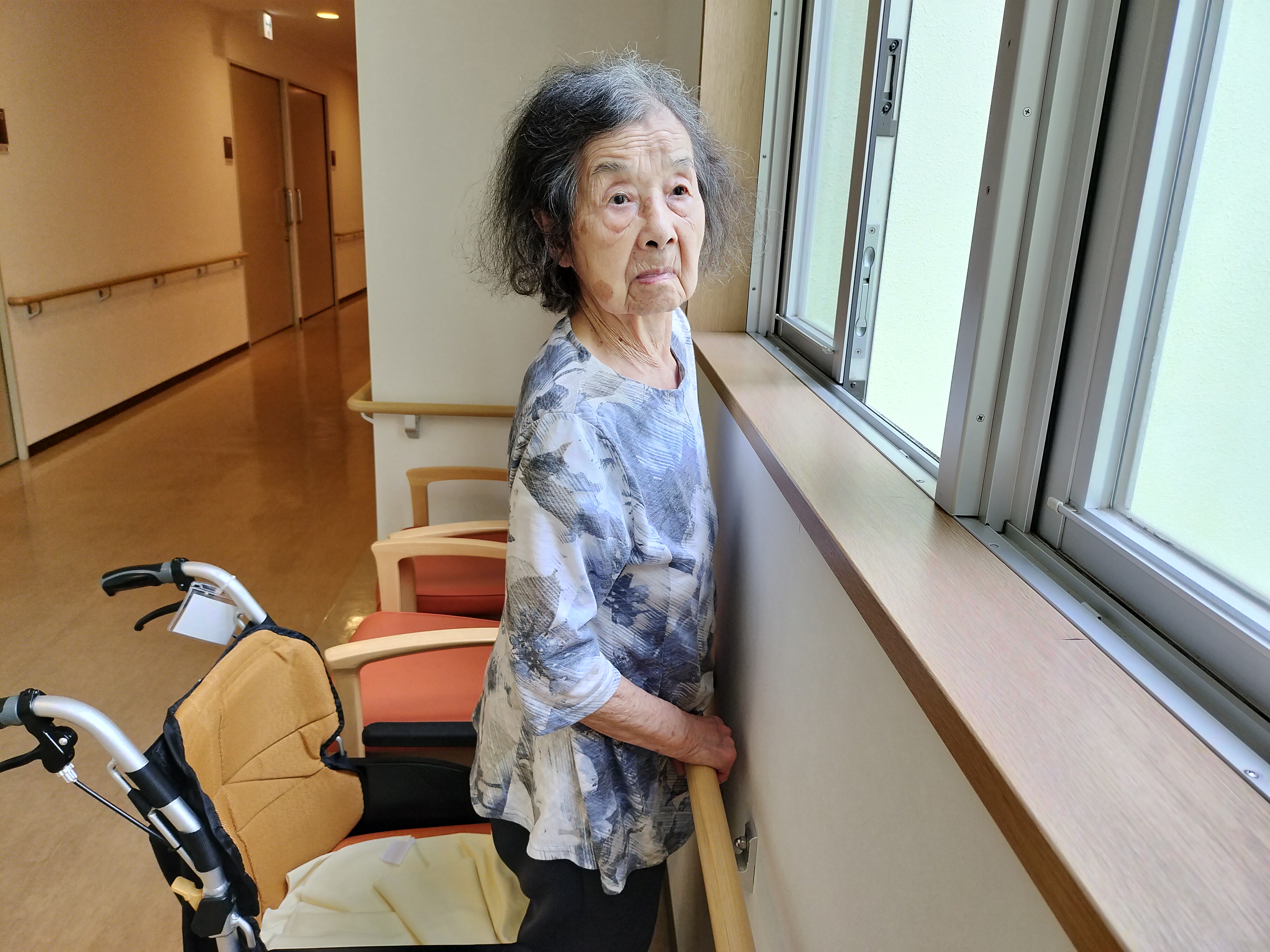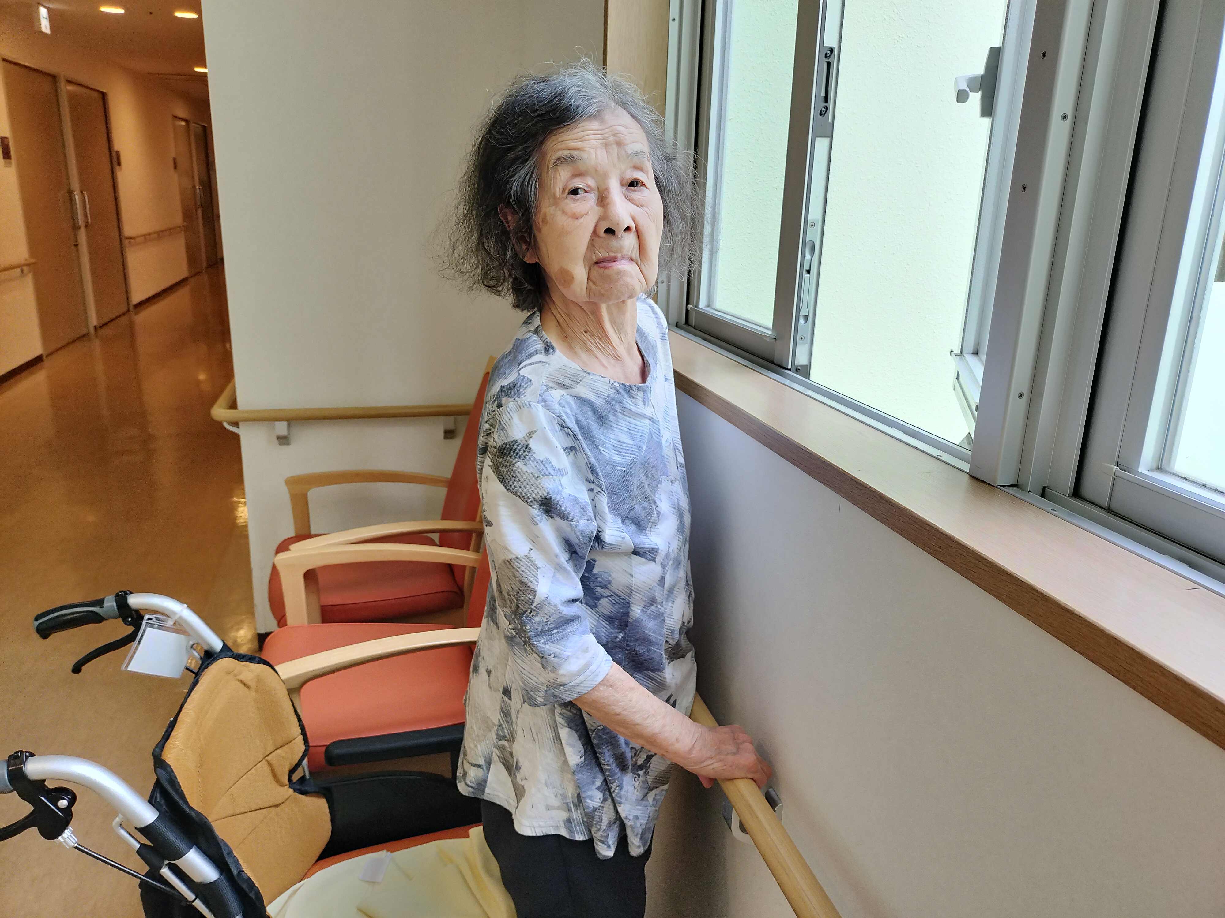 廊下からなんだか騒がしい声が聞こえてきて何かと思い覗いてみると、機能訓練士と入居者さんがスマホを見ながら盛り上がっていました