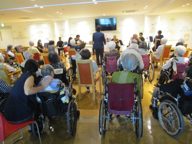 何人かの入居者様にはアロハシャツとレイを身につけて頂き雰囲気も倍増♪