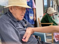 本日秋の陽気に誘われて皆さんで外気浴を楽しんでいると、あれ?可愛らしいお客様が仲間に入れていました。入居者様が「花の所に帰してあげなさい」と、優しいお言葉。