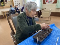 夏野菜の種まきをしました。キュウリ・ソーメン瓜・スイカ・トマト等の種蒔きをしました。苗を育てるのは珍しいと言われる方や、間引きをするので2~3粒まいた方がいいとか言われながらの作業でした。順調に苗が育ったら畑に移植したいと思います。畑には玉葱が順調に育ち収穫を楽しみにされています(^_-)-☆