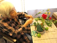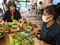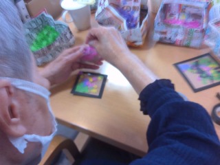 硬い茎に穴を開ける作業に苦戦していると、「あんま無理すんなよ。」と入居者様が心配して声をかけてくださいました(*^^*)