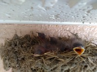 お母さんツバメは子ツバメ達に何度もご飯を運び一生懸命子育て中です。