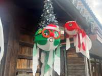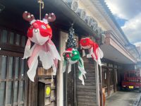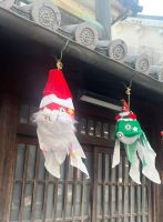 柳井の金魚提灯を見に行ってきました。この時期は金魚がクリスマスバージョンになっています。