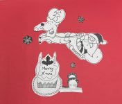 今回は、軒に下がった金魚提灯と、スタッフ手書きのサンタクロースのイラストをお届けします。