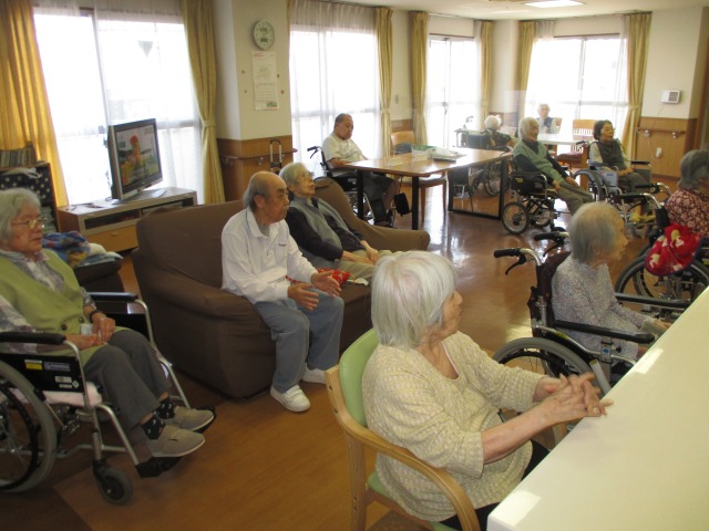 フルート・オカリナコンサートを鑑賞している入居者様の様子です。