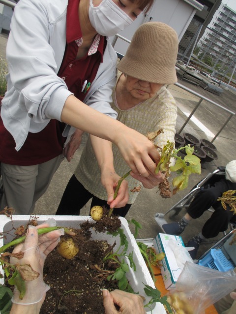 先日に引き続き今日も屋上でじゃがいも掘り!!