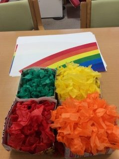 施設内に飾る、7月のカレンダーのぬり絵を楽しみながらぬっていただきました☆