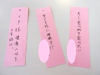 来月の七夕に向けて、皆様に短冊を書いていただいているので