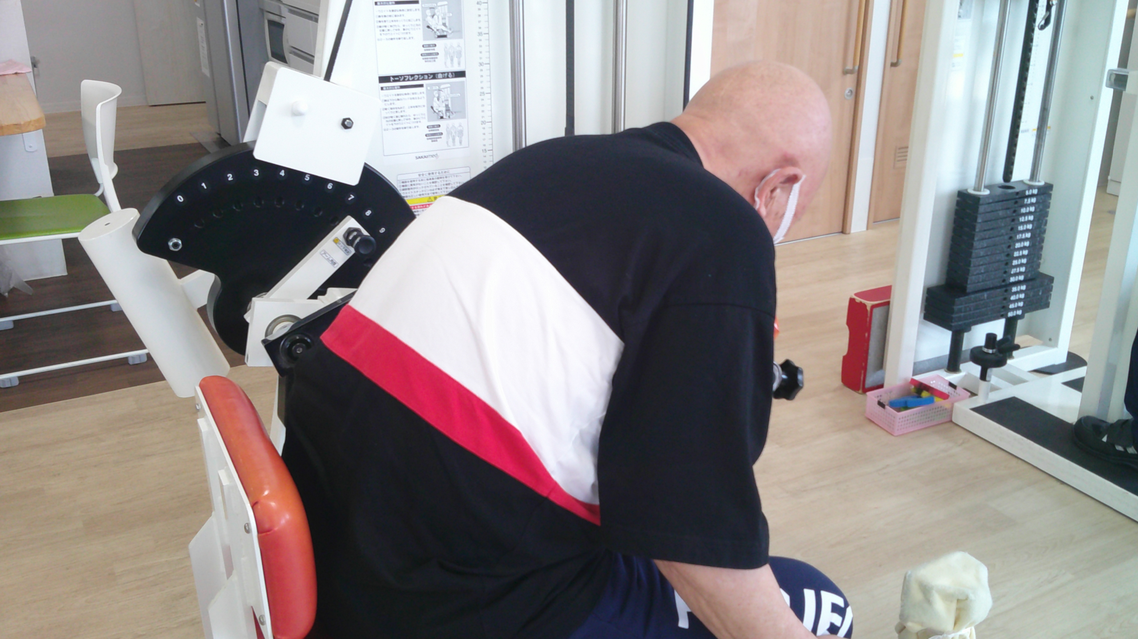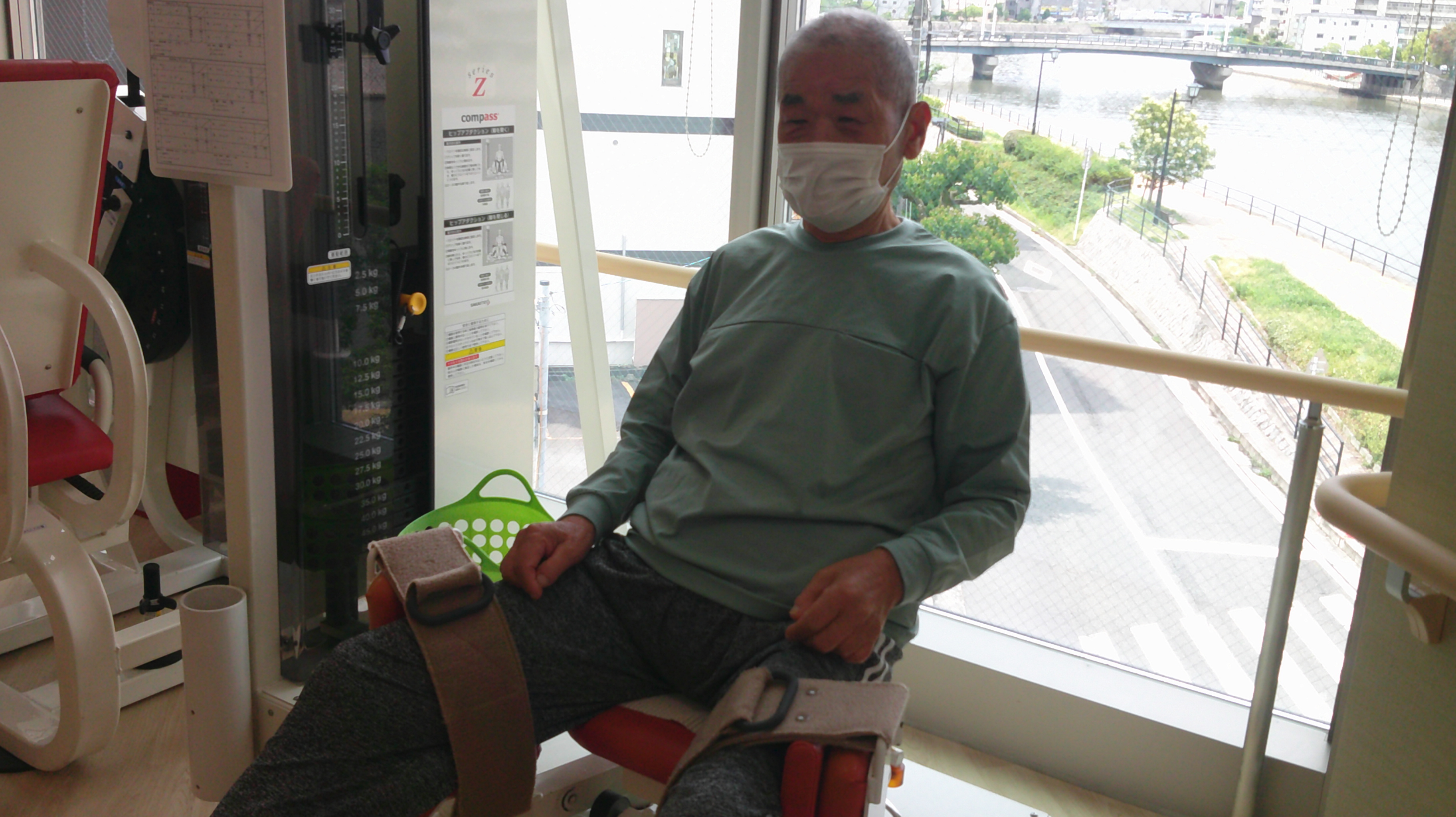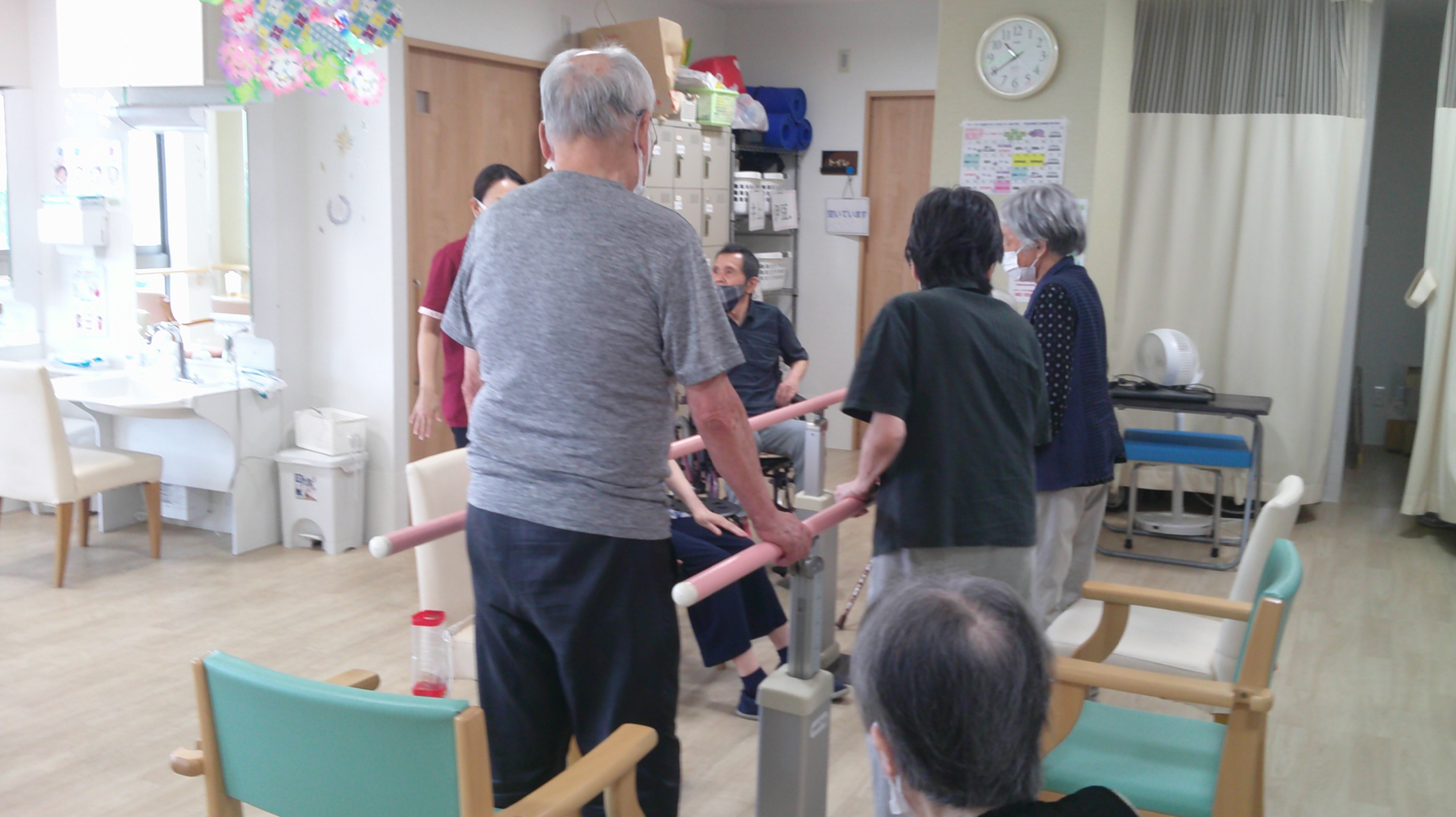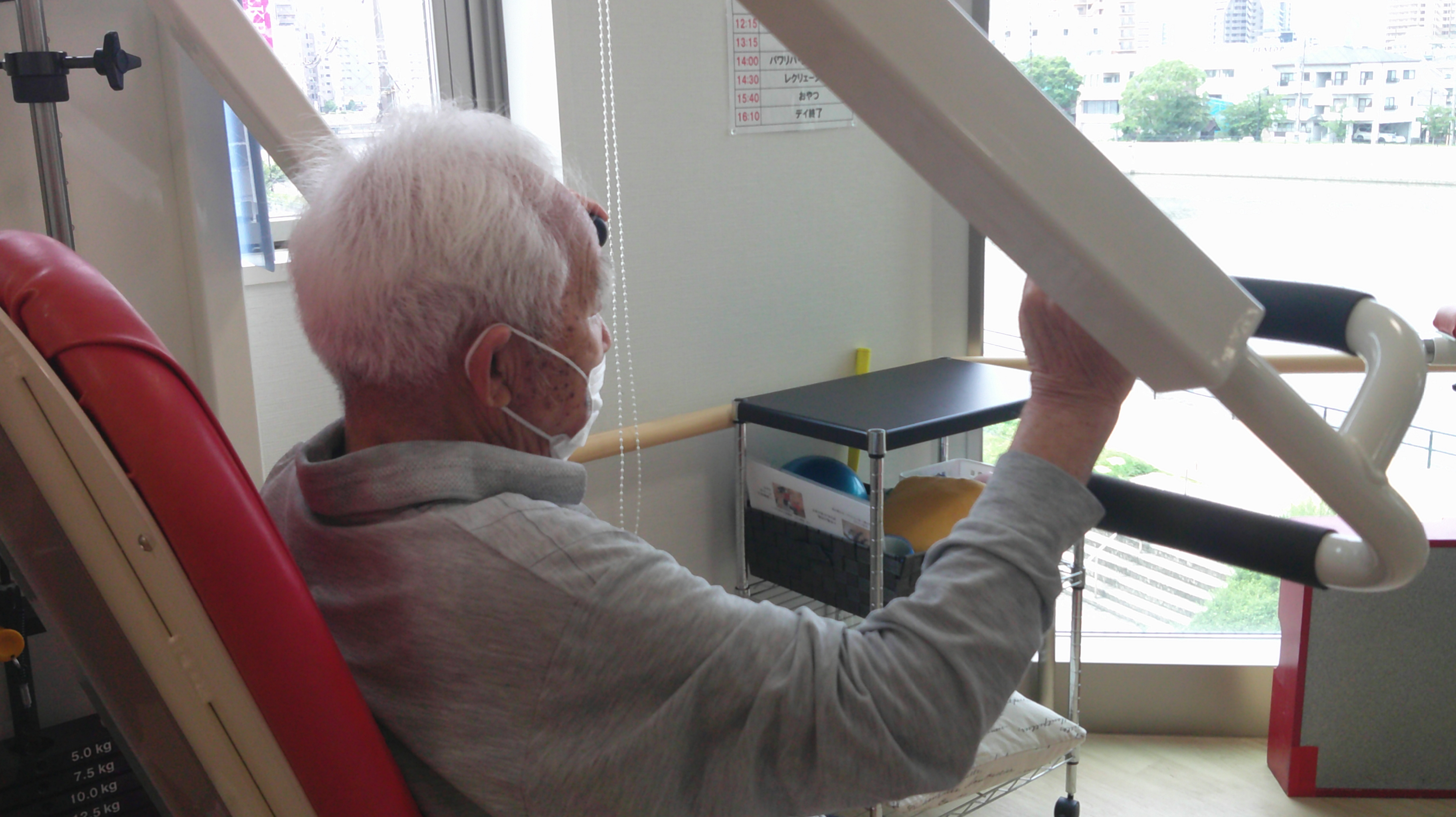 リハ室の前を通ると、ちょうどリハビリを終えようとしていた