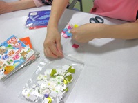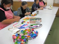 くす玉の中に入れる飾りを急ピッチで作成しています。
