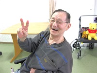さっぱりと素敵になった入居者様は、満足度100%のピースサインですね(*^^)v
