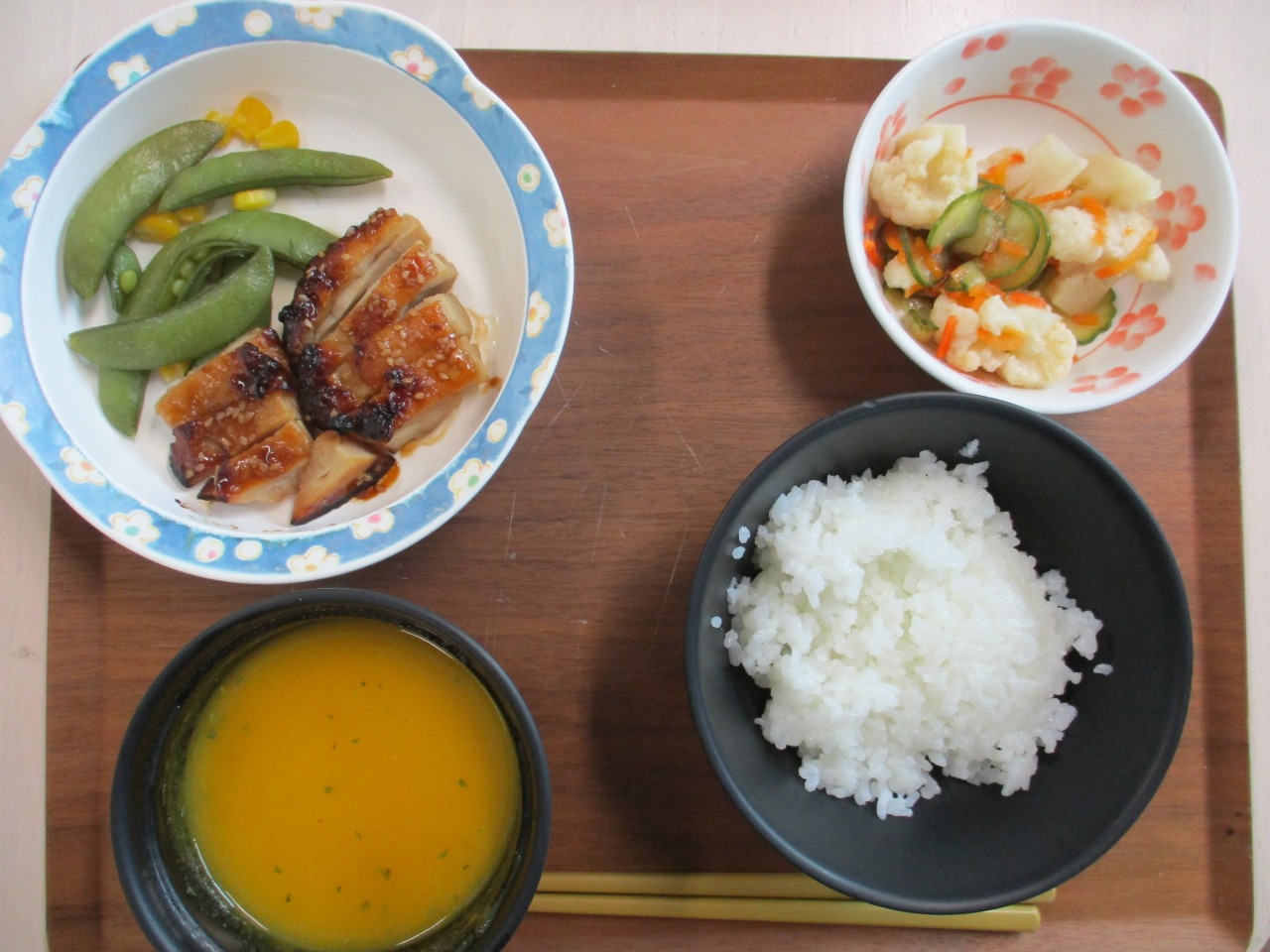 夕ご飯は鶏のゴマ焼き・中華ドレサラダ・パンプキンスープでした