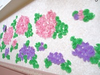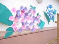 先日入居者様と一緒に折っていた折り紙は、あじさいになりました♪