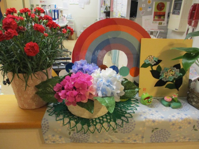 各フロワーにカーネーションを飾りました。カーネーションを見るなり、感動され涙を浮かべて喜んでくださったご入居者様。記念の写真を撮らせていただきました。昼食は「母の日ランチ」で、特に筍ご飯が美味しかった😋と好評でした。今回も機能訓練指導員が母の日と父の日にまつわるパネルを作成してくれました。これを見ると、母の日、父の日の事がよくわかります。