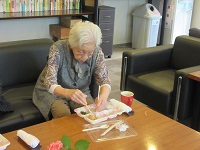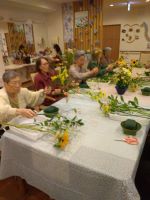 男性のご入居者様も参加されていて、真剣にお花と向き合っていました。出来上がりにご満足の様子でした。他の方々も素敵なアレンジメントが完成しました。