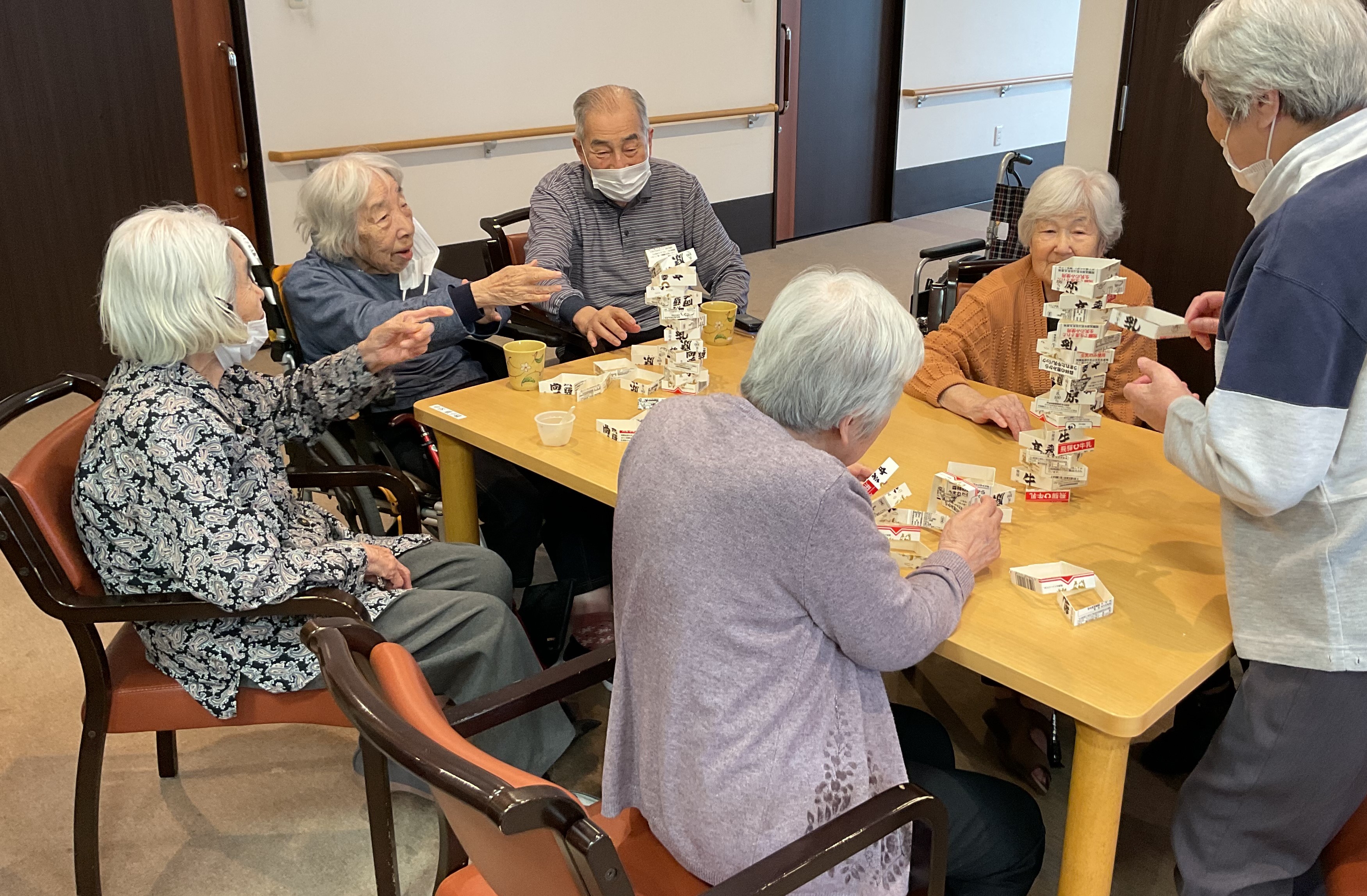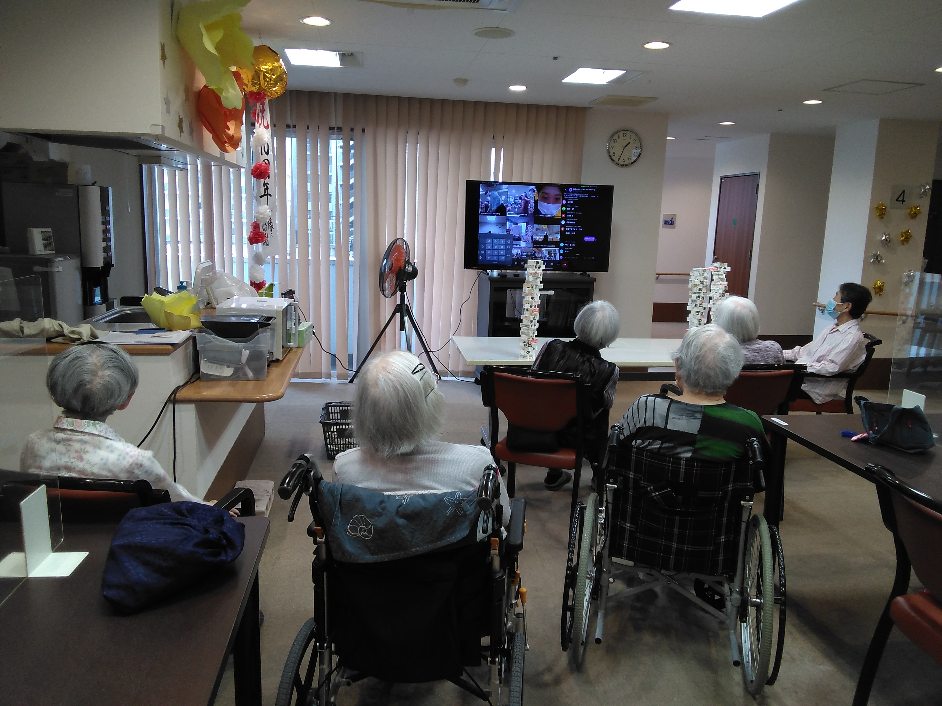 通りかかった入居者様が現場監督のように「もう少し右の方がいいと思うよ」とアドバイス☺