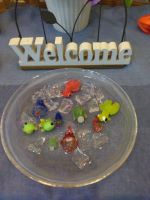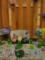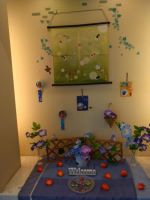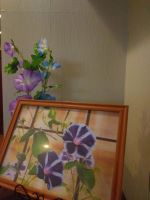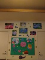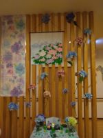 昨年と反対で玄関が朝顔、館内は紫陽花にしました。金魚のタペストリーに合わせてガラスの中には可愛い金魚さん達が泳いでいます。紫陽花🐌にはご入居者様が折られたカエルも飾ってあります。初夏と梅雨の気分を皆様に感じていただけたらと思います。