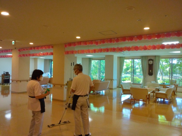 毎日多目的ホールからフロア、居室まで綺麗に清掃していただいております(^_-)-☆