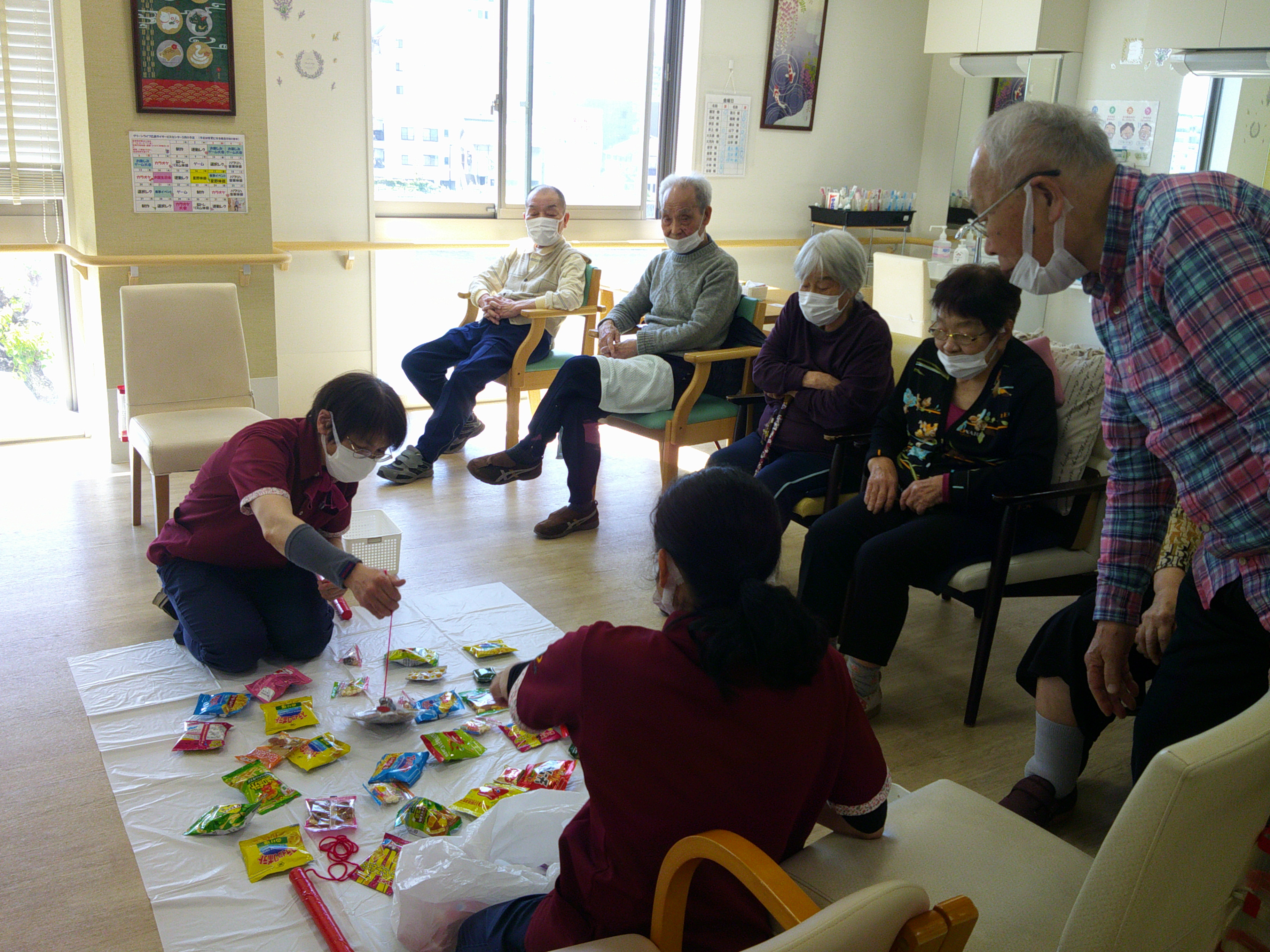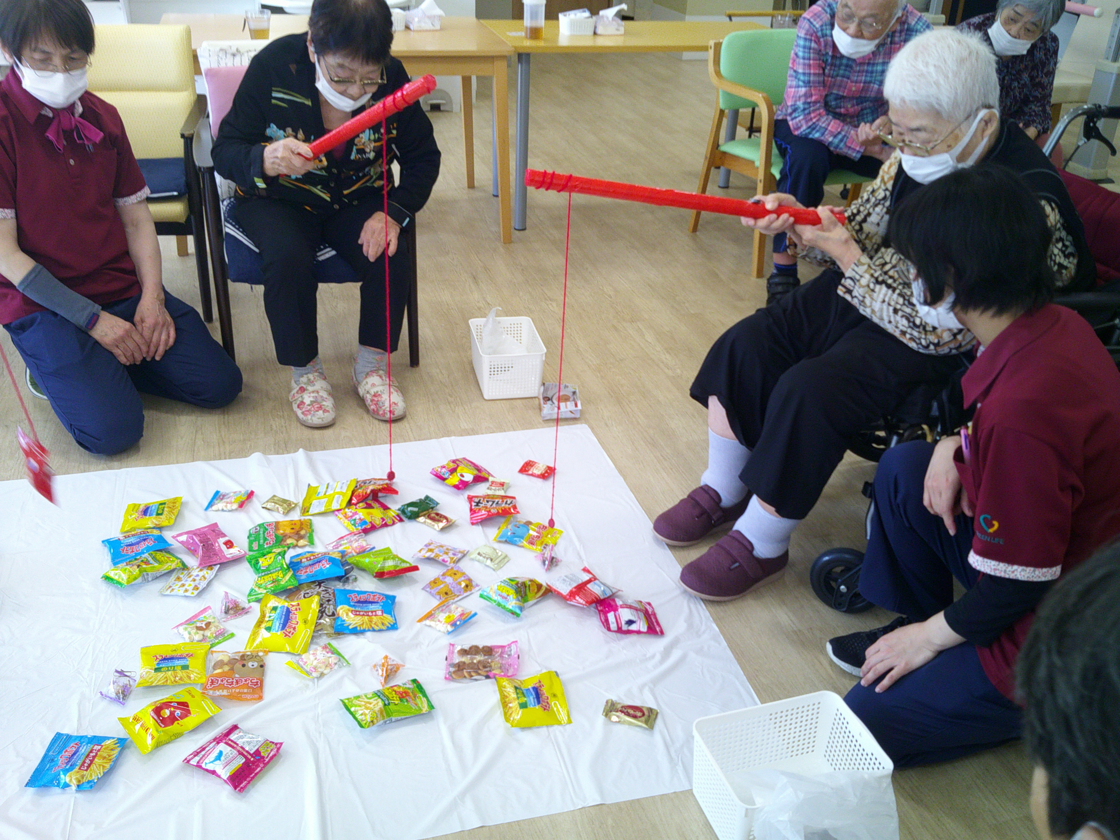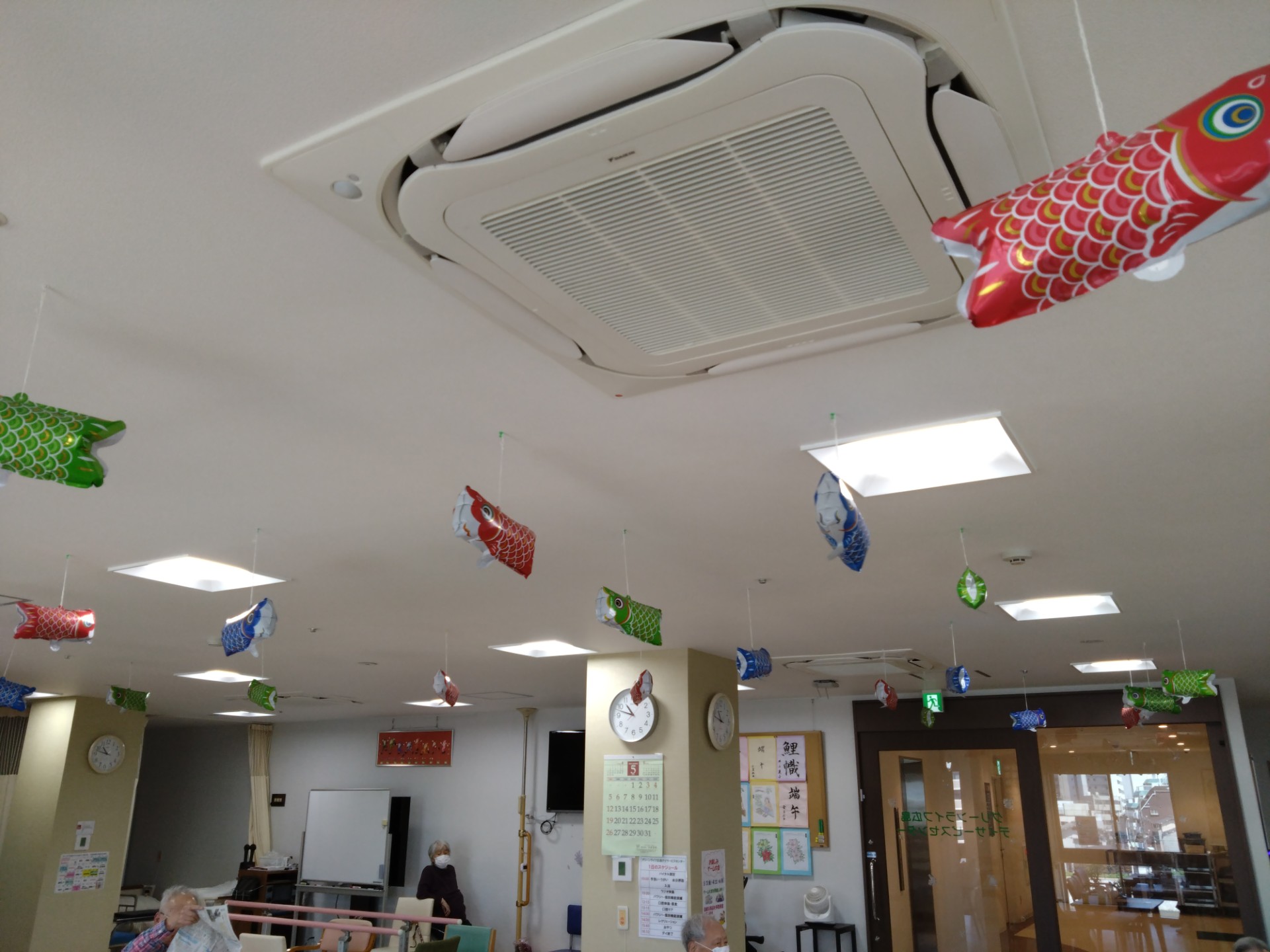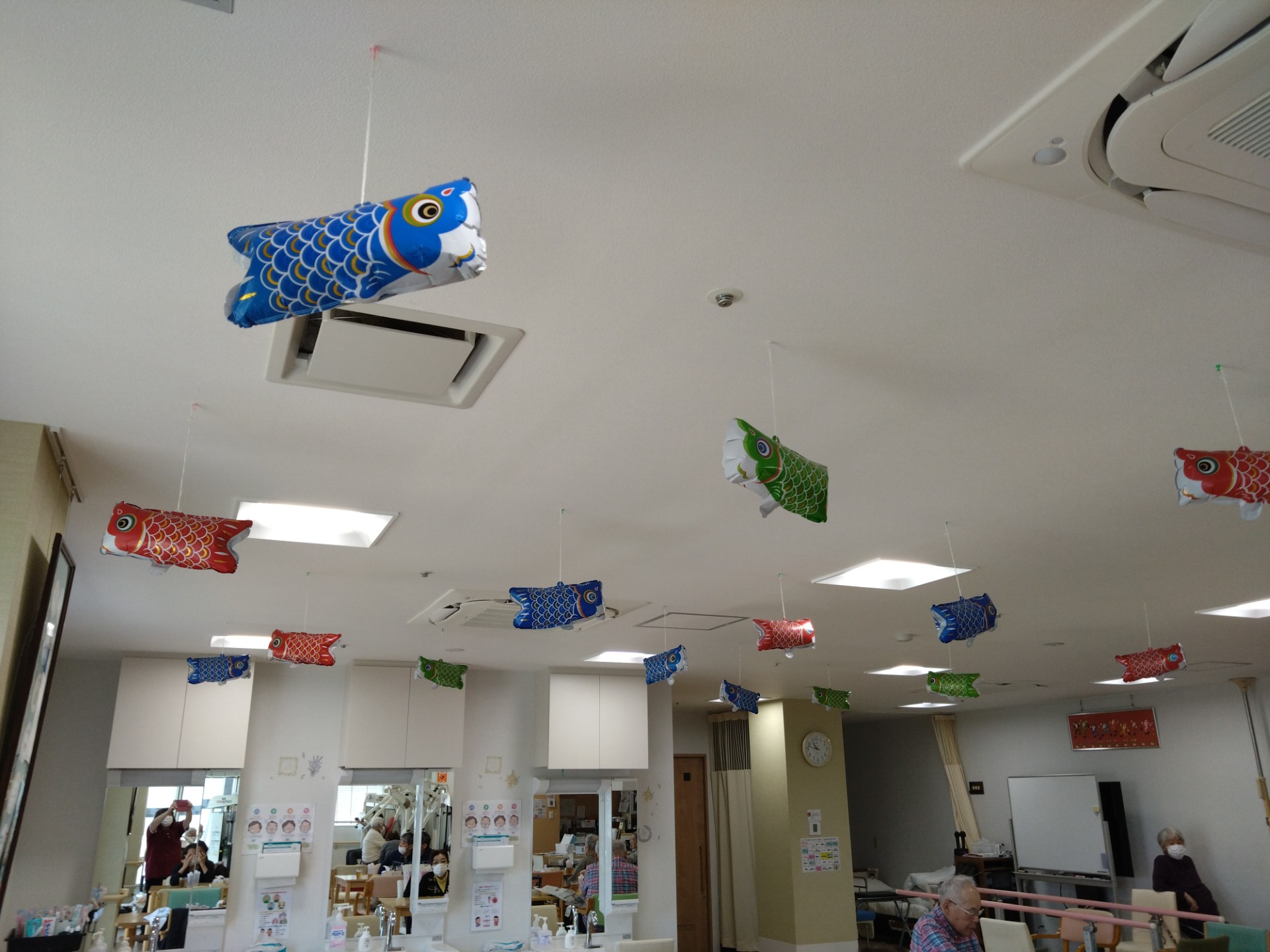 ご入居者様の力作、貼り絵の鯉のぼりもご紹介します。