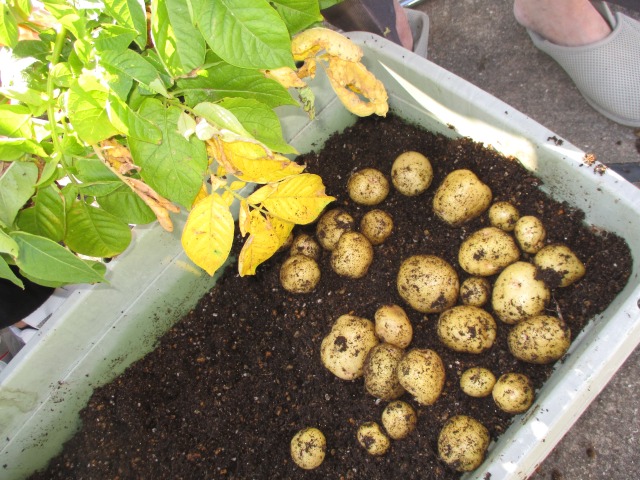 「屋上のじゃがいもを試し掘りしてみよう!」ということで・・「1個ずつな」と言いながら掘っておられたのですが・・あれれ・・気が付くといっぱい掘っておられました(笑)