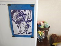 後ろに飾られた、滝平二郎の切り絵もまるで本物のような出来栄えで