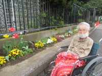 今日は外気浴を兼ねて、畑の周りの草取りをして頂きました。午後は居室で休まれことが多いのですが、せっかくのお天気なので外に出ていただき、畑の周囲の草取りで季節感を感じて頂くことが出来ました。雑草を取り除いた畑には玉葱が勢いよく成長し、ジャガイモの植え付けも終わり収穫が楽しみです(^_-)-☆