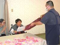 入居者様5名が1列になりバトンを手渡しし