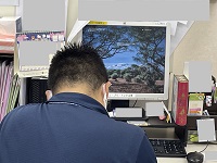 今日も一生懸命現場で働いた後、事務所で書類作成をしています。