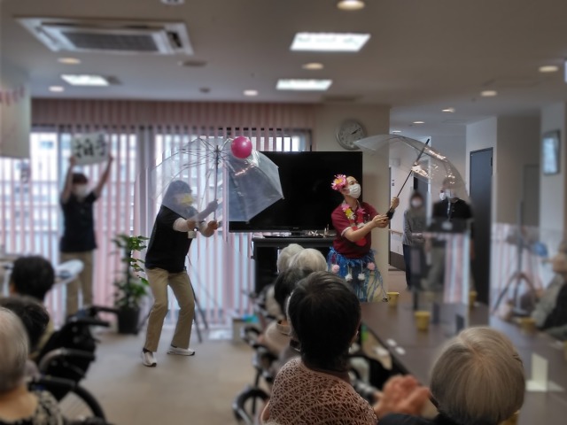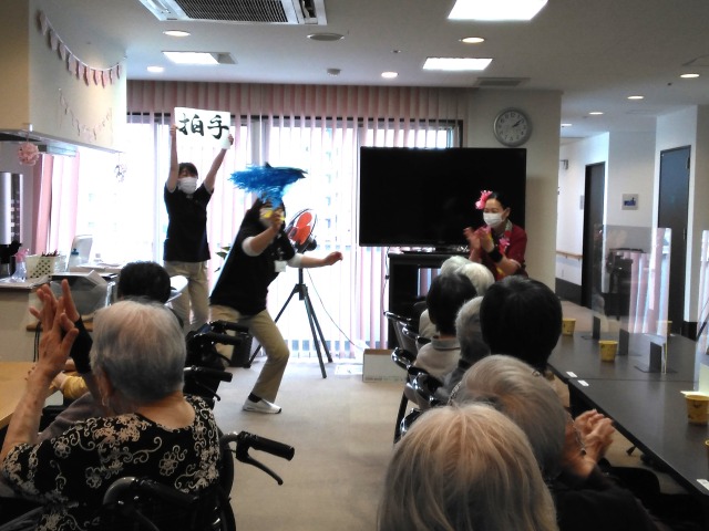 まずはカッパさんとフラダンスのお姉さんがお誕生日会を楽しく盛り上げて下さいました。
