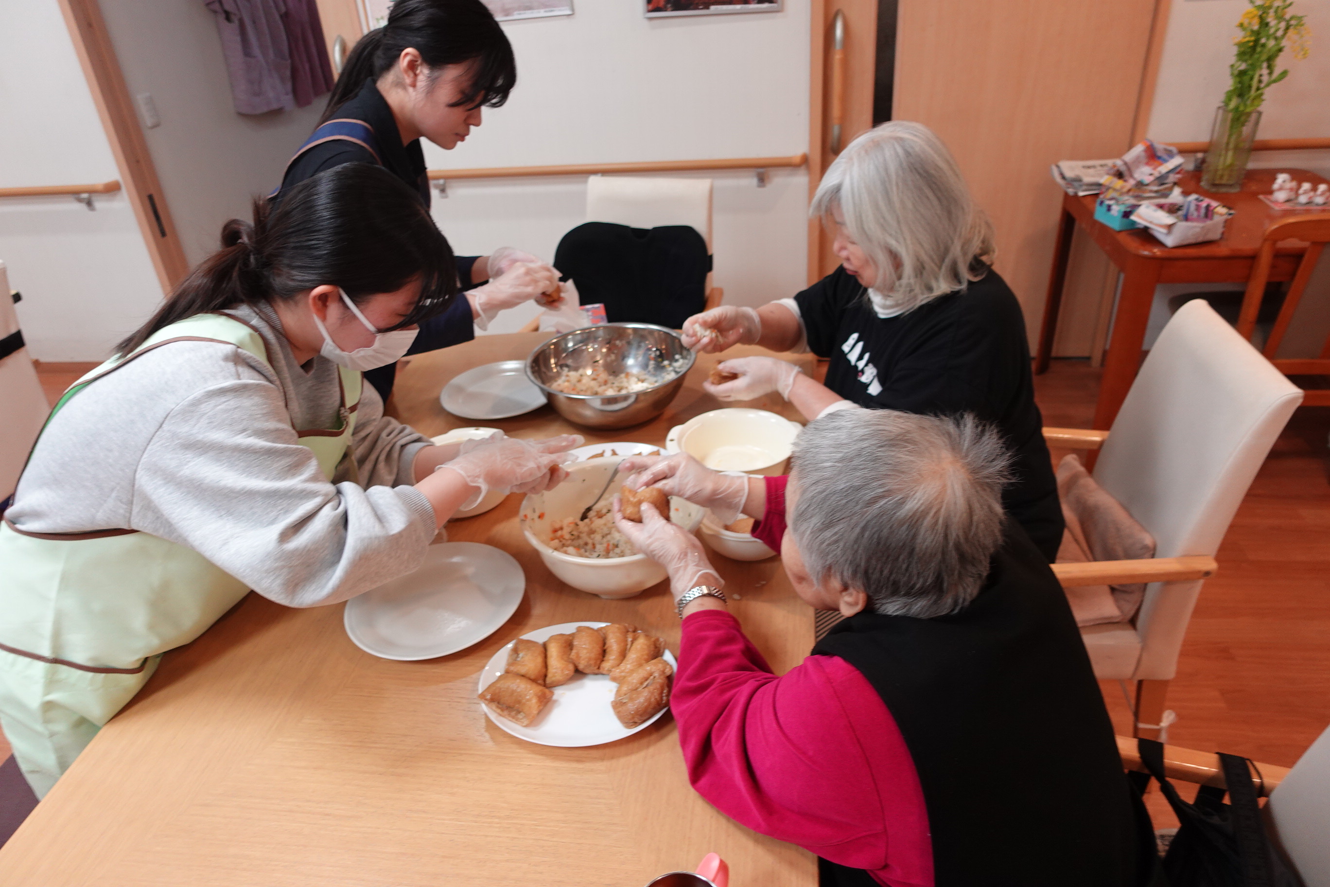 ご利用者様にお稲荷さんの作り方を教えてもらい学びに繋がっております、