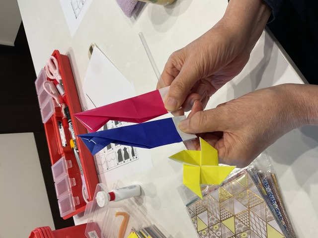 ∥|\|ノ彡巛巛巛巛三 いろとりどりの折り紙で上手に作られました。