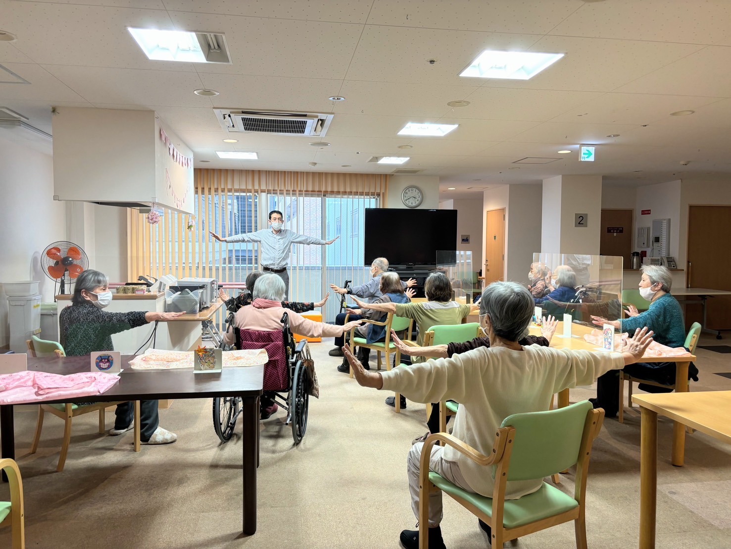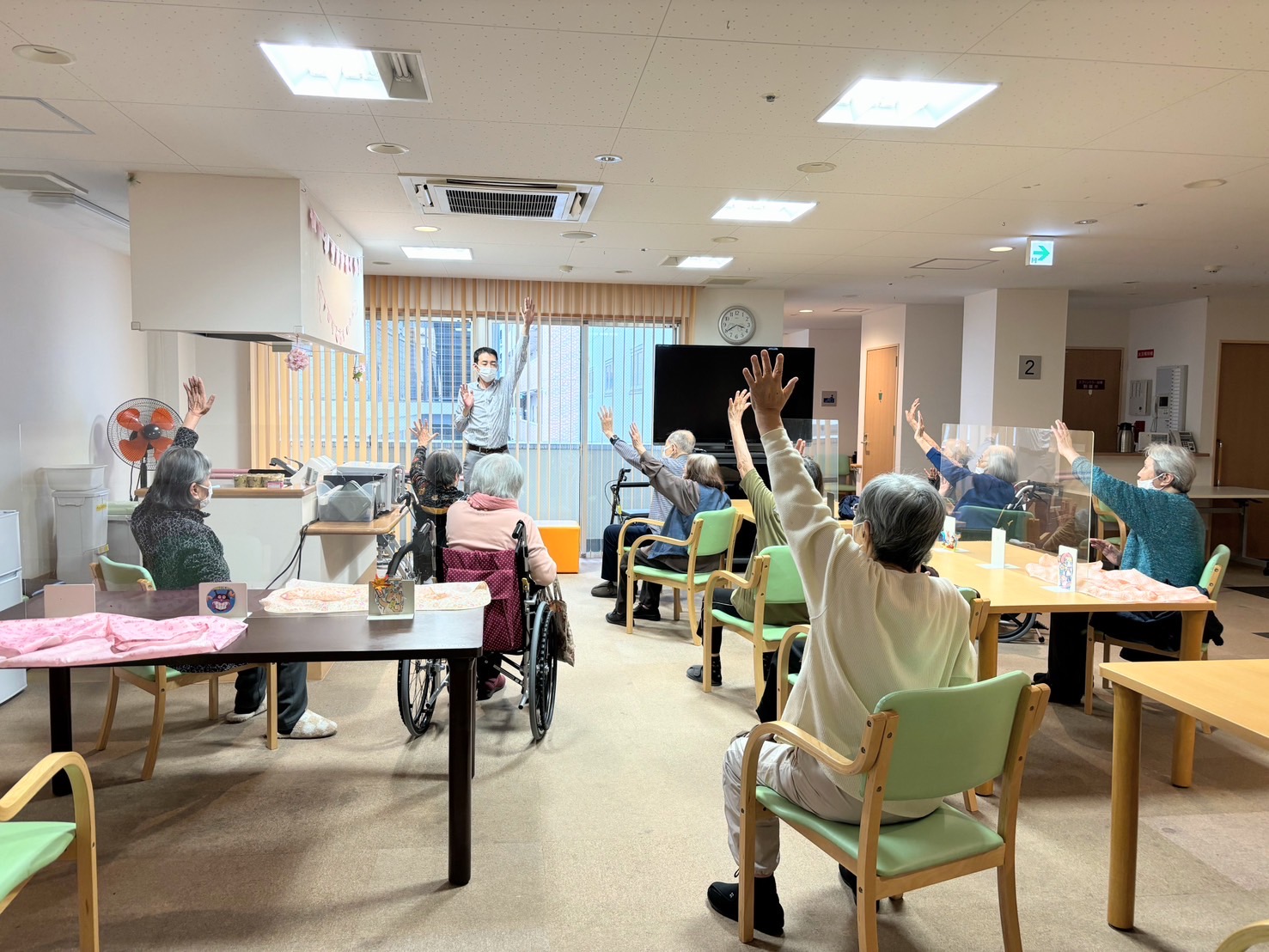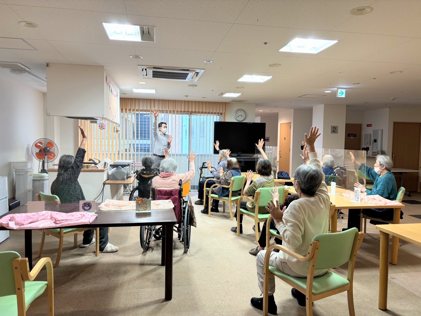 アヒル競争など園内を散策、昼食はハヤシライスを召し上がり、皆様大喜び😊