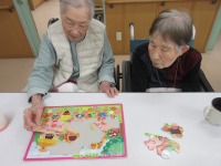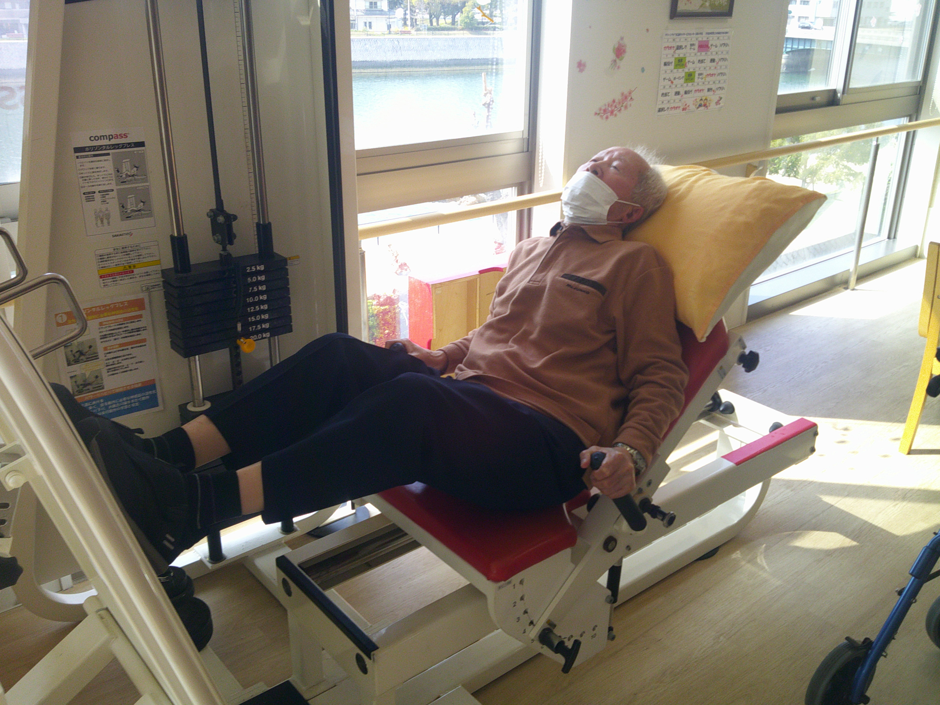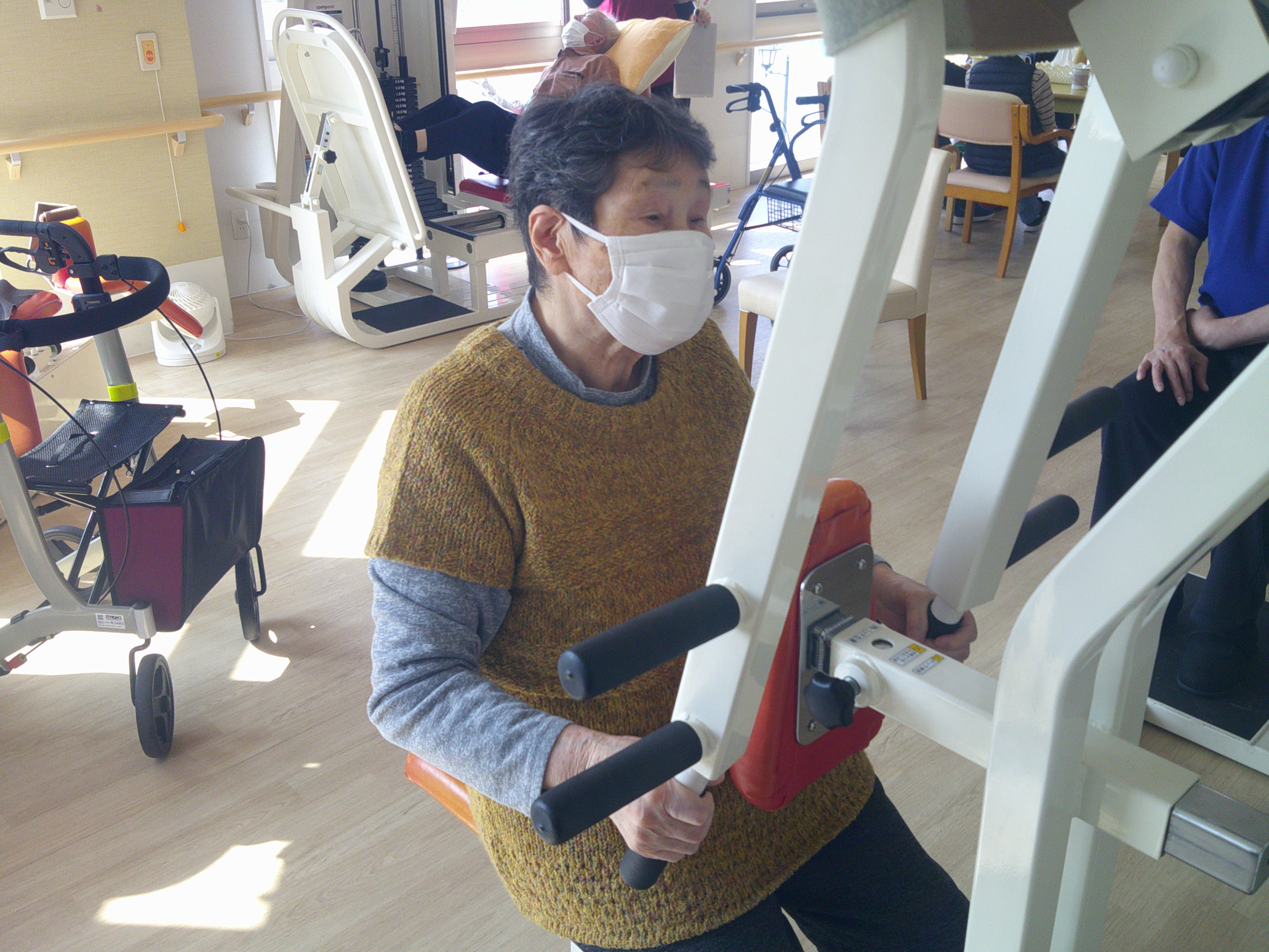 綺麗に塗り絵をされたり、機械を使って運動頑張られています。
