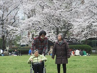 桜吹雪をみなさんに「それ~」とばかりに頭にかけました!