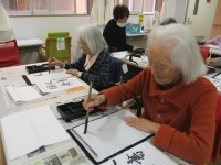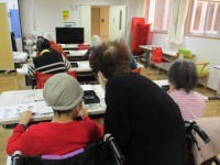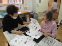 メディス吉岡の玄関では、レクリエーションの写真や今後のイベント予定を掲示しています。