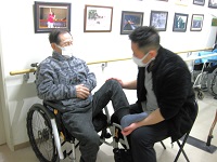 入居者様の足の筋肉が硬くなっていたので、マッサージをしながらほぐしていきます。