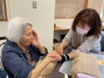 こんにちは、シーハーツ柏です。本日はハンドマッサージの先生にお越しいただき、入居者様はマッサージを体験しました。 身体のマッサージを定期的に利用されている入居者様もいらっしゃいますが、「手」に特化したマッサージはあまり機会がありません。 ボランティアさんの来館は貴重な機会です。「昔は手に筋肉があったのに、こんなになってしまったよ。」と、ある男性の入居者様。 ご自身の手をじっくり見る機会も少ないのでいい機会でした。「あ~、気持ちいいです。いい塩梅ですね。」「軽くなりました。」と、さまざまなコメントがありました。 ボランティアの鈴木様、ありがとうございました。