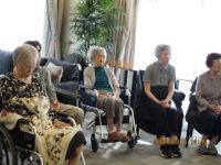 音楽療法士の先生が今月も楽しい音楽レクをしてくださいました。