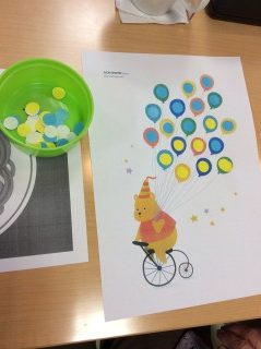 利用者様に作っていただいている制作も季節ごとにきれいに作っていただいておりますが、ホールなどに飾るカレンダーはスタッフが毎月作らせてもらっております。