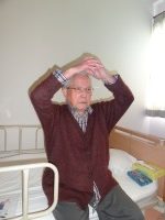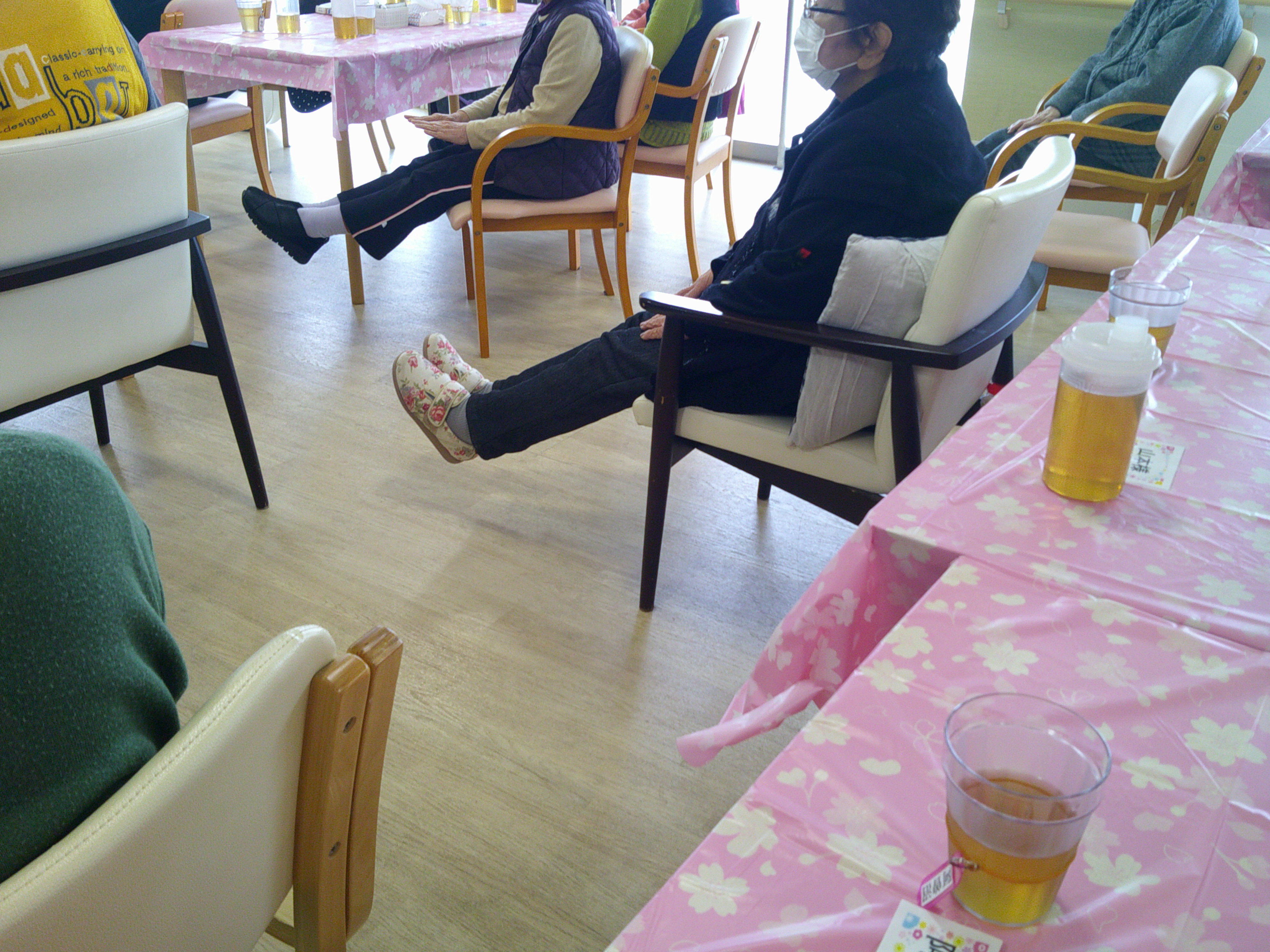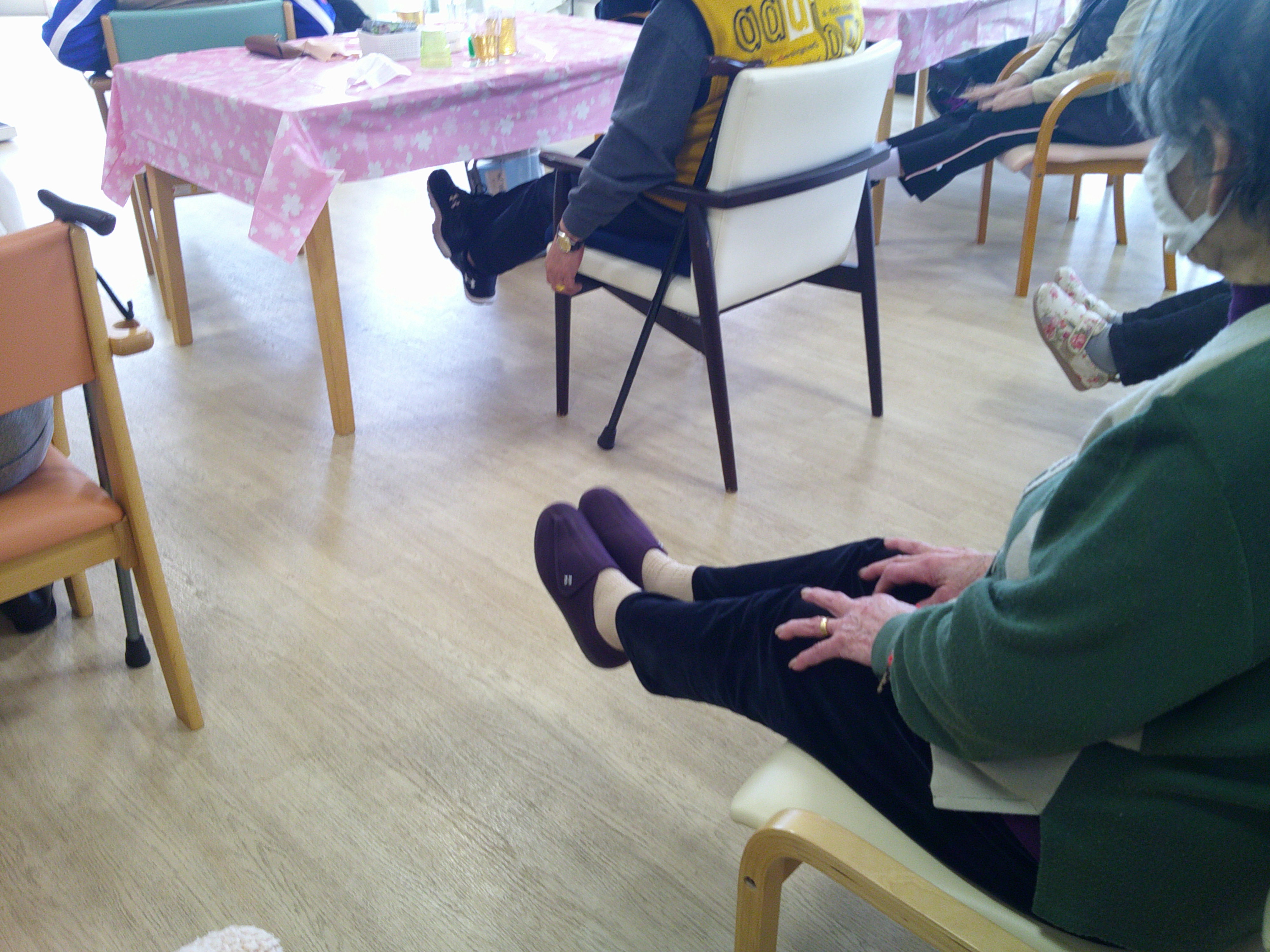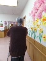 今日は、皆さん楽しみにしている音楽療法の日です。ピアノの伴奏に合わせて歌を唄ったり体を動かしたり、楽器を手に持ち鳴らしたりします。1曲目は、「どこかで春が」次は、「春が来た」です。皆さんに話を聞くと「桜、菜の花、モクレン、水仙、たんぽぽ、鶯、めじろ」などの話が出てきました。今年は冷え込む日が多くて、春といった感じはまだ出ないですが、早く暖かくなる日を思いながら歌を唄いました。他には、鉄道唱歌、仰げば尊し、高校三年生、おぼろ月夜、星影のワルツ等を唄いました。皆さん気持ちよさそうに歌っていました(^^♪