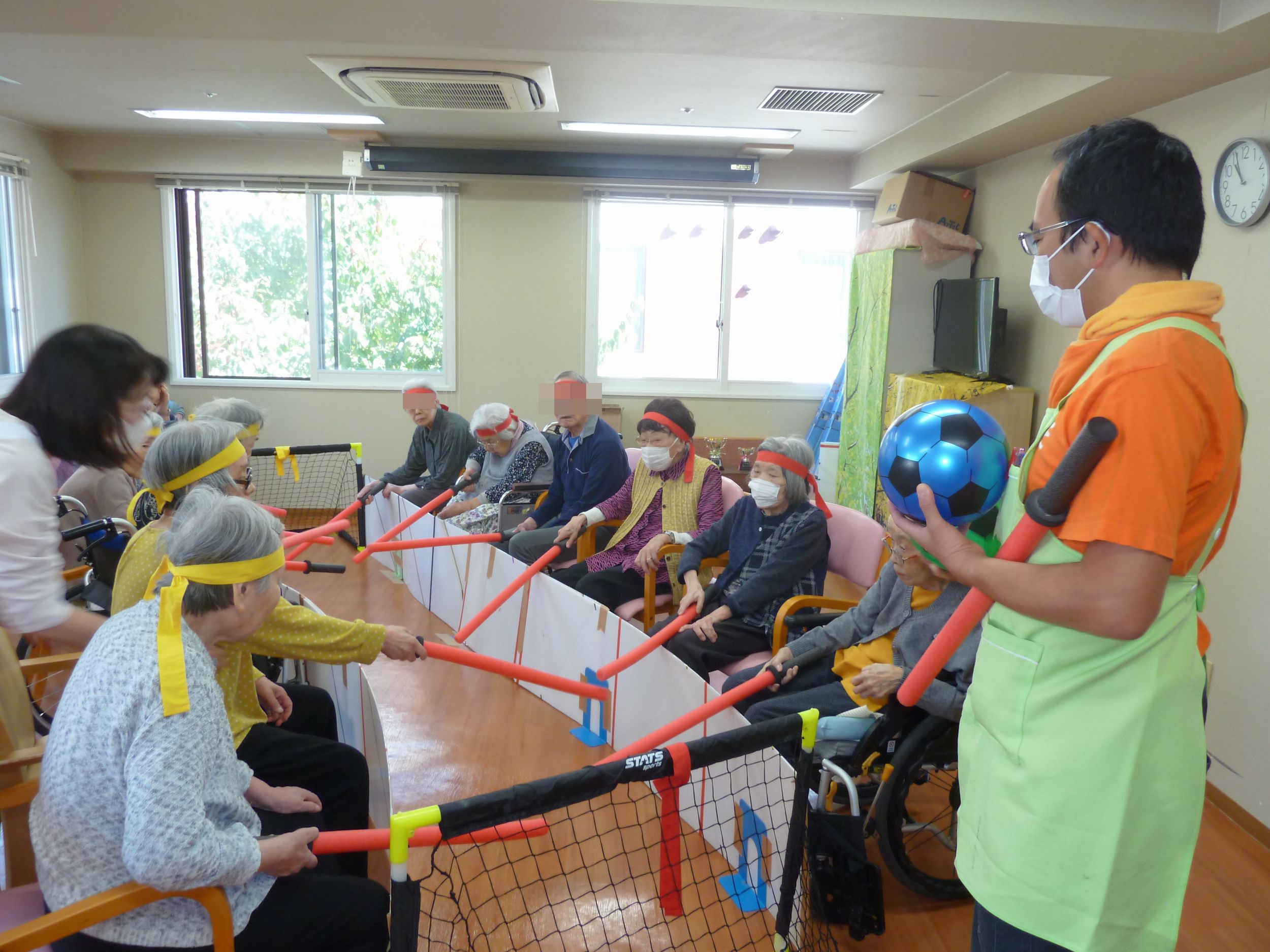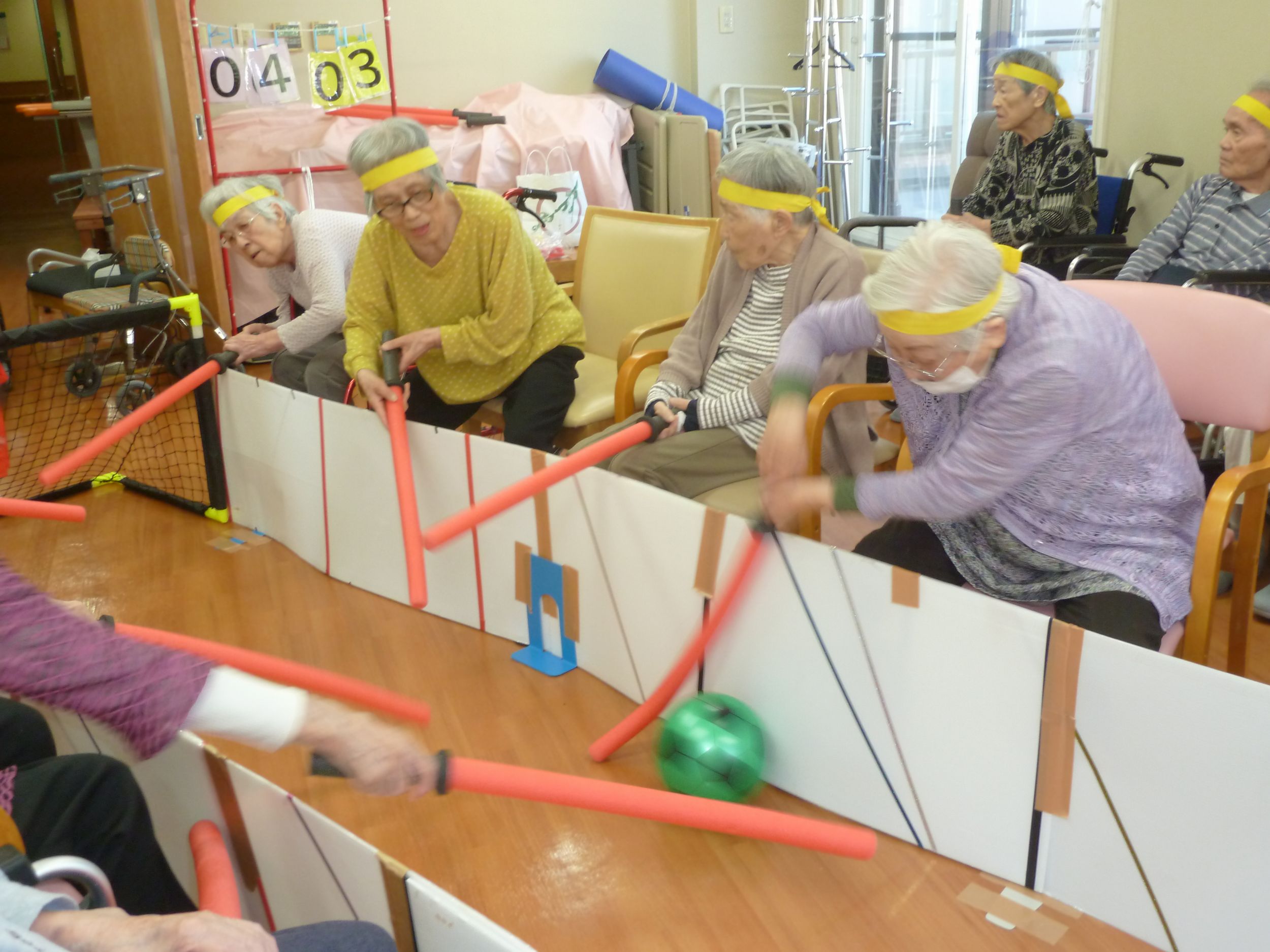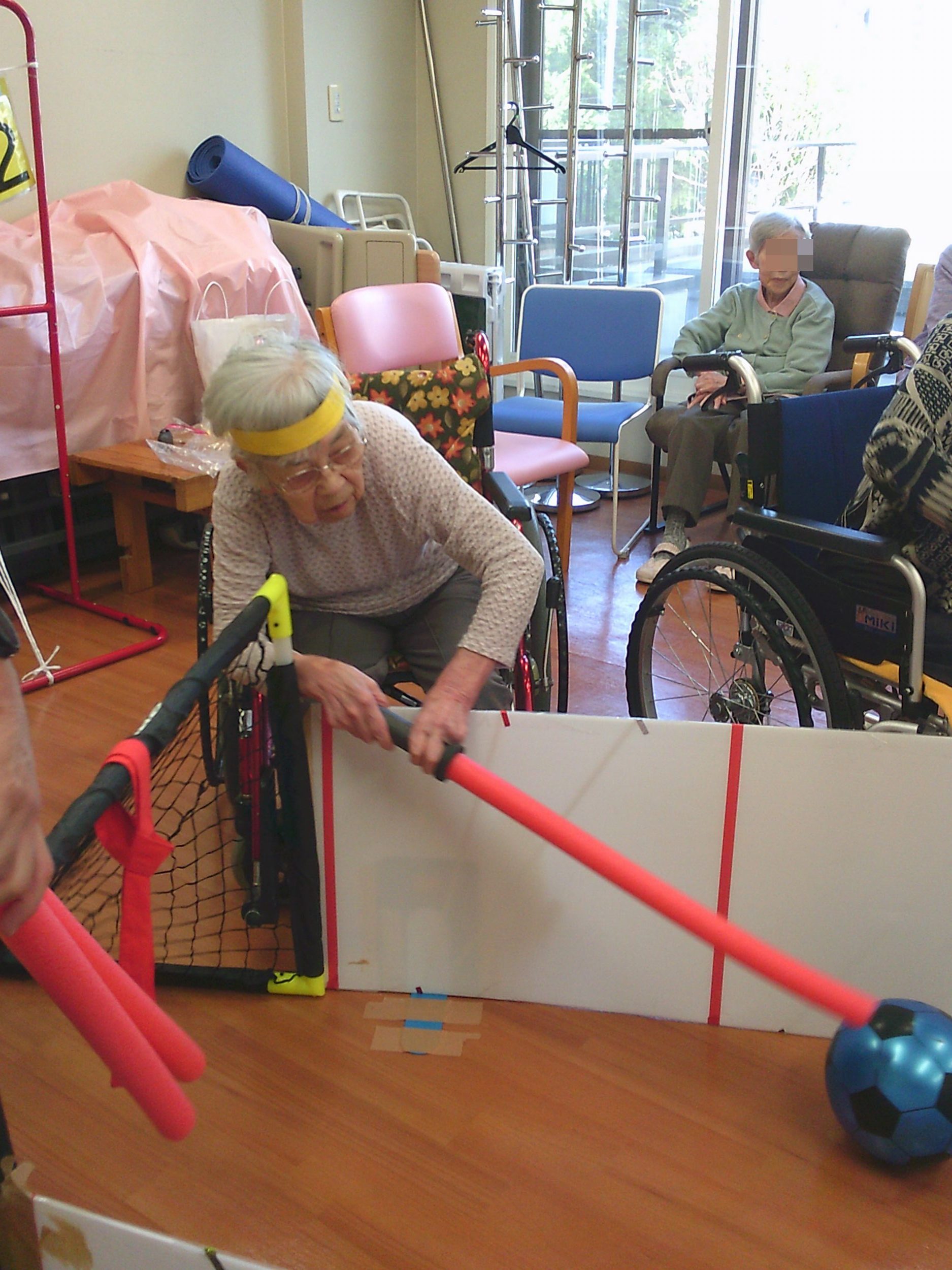 力強くボールを叩きすぎて、反対の列の入居者様の腕の中にスッポリ入ってしまうという珍事件(笑)