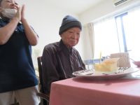 今日は10月生まれの方の誕生日会をしました。女性利用者様お一人で年齢は秘密です!とても恥ずかしがりな方で「私なんか誕生日会しなくても良かったのにありがとうございます。」と言われていました。デイサービス恒例のイルカのケーキを見て「可愛いわね!ケーキを作ってもらってうれしいわ」と喜ばれていました。来月も美味しいケーキを作りたいと思います(^-^)