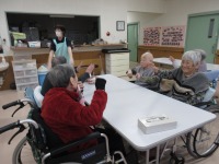 今日は輪投げを行いました(^O^) 5本の的に向かって皆様上手に投げます。入らない方もいらっしゃいましたが、最後に大きな輪っかを投げて頂きました。そのおかげか高得点を出される方がたくさんいらっしゃいました!大きな輪っかを上手に投げた利用者様が「おっかぶせるといいよ!」と他の利用者様にアドバイスをされたり、「頑張れ~」「すごい上手だね!」と声援も聞こえてきてとても賑やかな時間でした♪