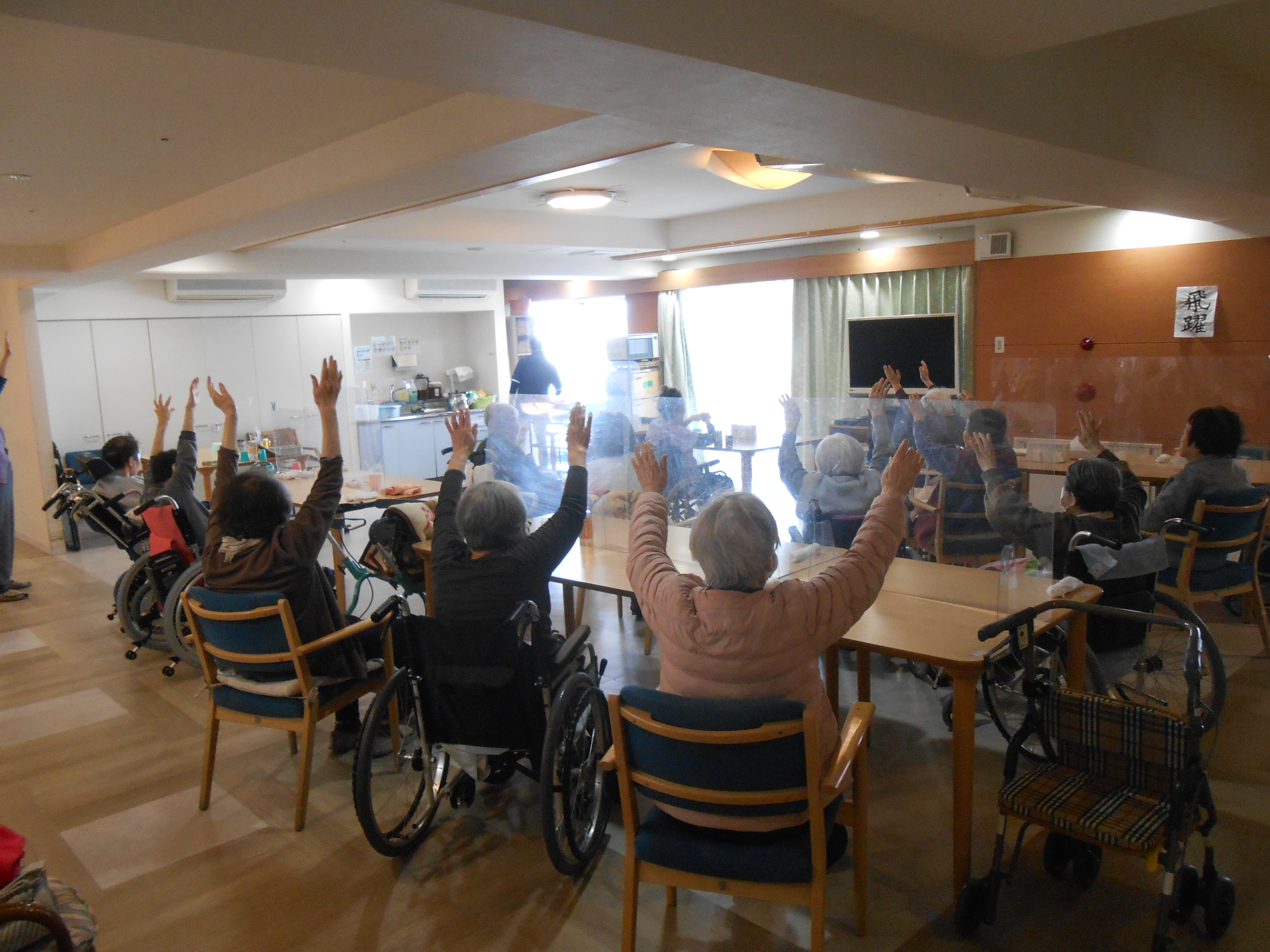 入居者様と外部参加の地域の皆さまが一緒に体を動かし、