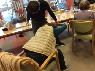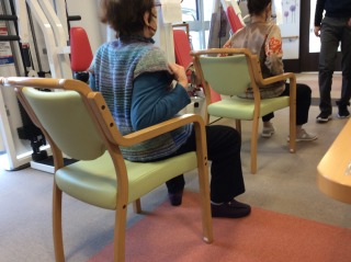 理美容を受けている入居者様と、仲良しの入居者様が見学していました。